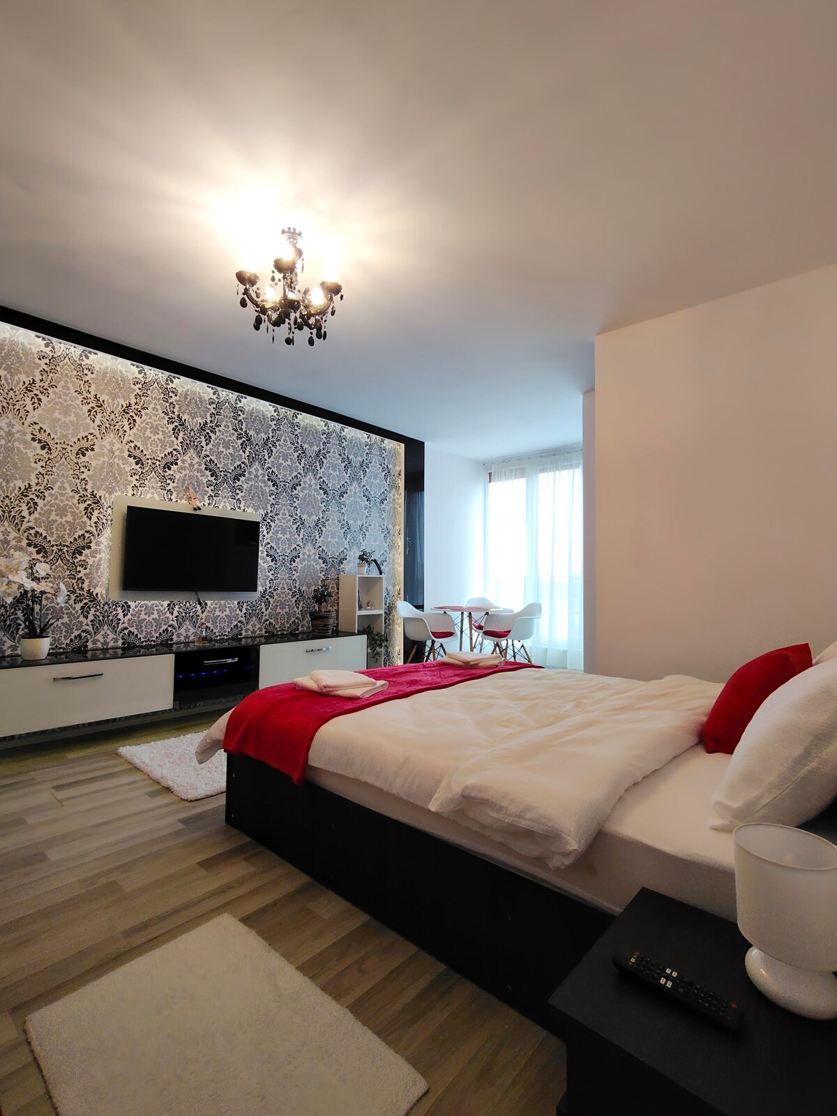 Ce logement unique a un style qui lui est propre, un endroit où chaque détail compte. L'appartement est situé dans le complexe résidentiel de luxe Unirii Park, un complexe récemment construit dans un quartier très calme. Le bloc est à 2 minutes de la clinique Sevalia Medica et du supermarché Penny, à 7 minutes du centre et à 9 minutes de l'hôpital du comté de Mures. Le logement est situé au rez-de-chaussée du bloc. Vue magnifique sur la forêt. Parking privé gratuit à l'entrée du bloc.