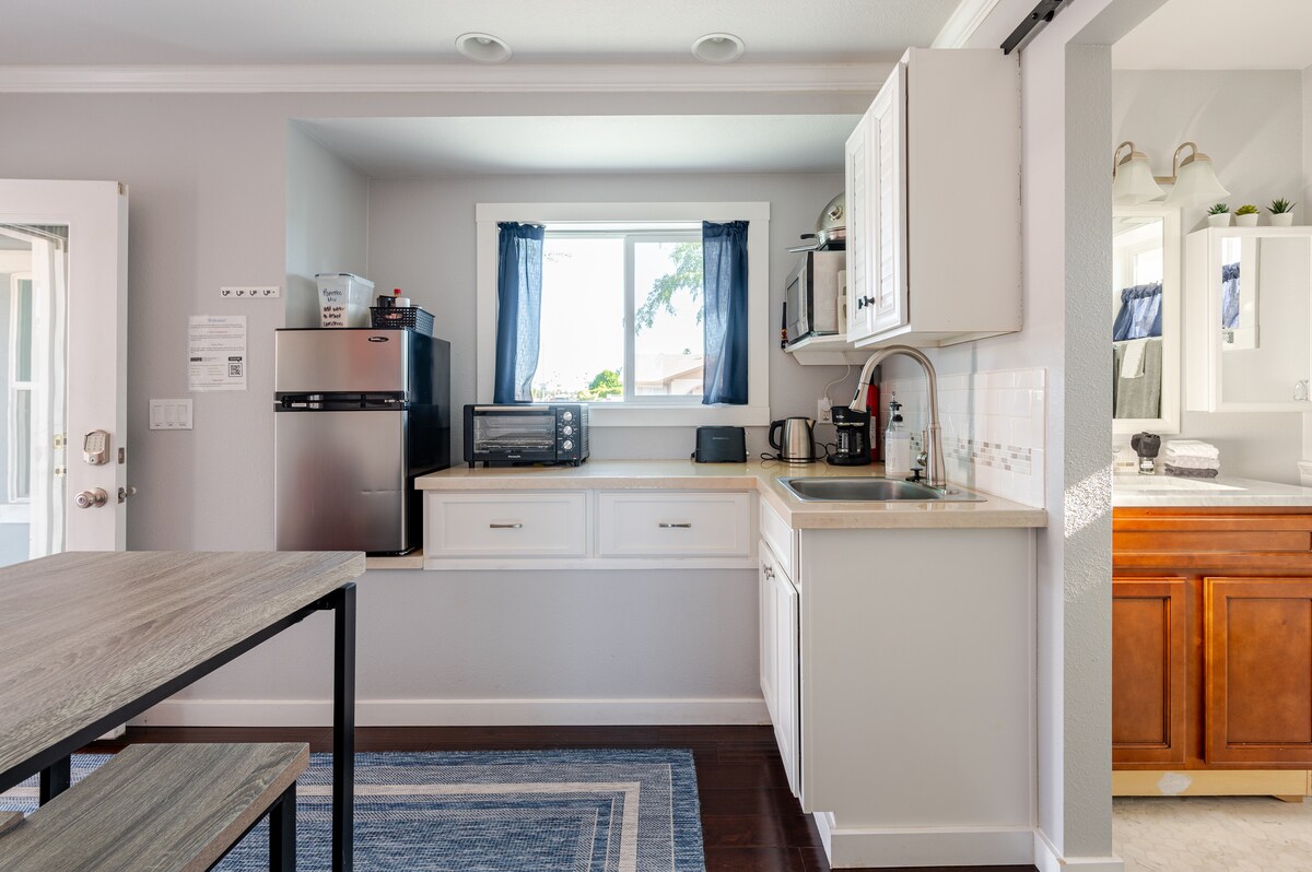 Découvrez notre nouveau studio, conçu en pensant à tous vos besoins. La cuisine est entièrement équipée et comprend un réfrigérateur, un four-grille-pain et une cafetière, et vous apprécierez le confort supplémentaire offert par un lave-linge et un sèche-linge dans le logement. Situé à quelques kilomètres de Gilbert, Tempe et Scottsdale, notre havre de paix moderne est le point de départ idéal pour vos aventures en Arizona. Réservez dès maintenant pour passer un séjour sans souci et confortable !