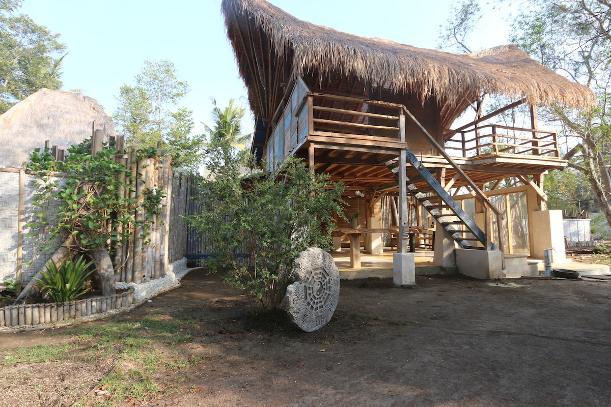 Fabriquée principalement en bambou, cette maison de style traditionnel offre une expérience authentique sur l'île de Gili Meno. Le bambou est le matériau de construction traditionnel de Lombok et le matériau de construction le plus durable sur le plan environnemental. Les bâtiments en bambou respirent pour que la maison reste naturellement fraîche. Construit également pour le confort, il est situé dans un magnifique jardin, avec cuisine privée, salon et salle de bain, bénéficiant d'une douche à eau chaude chauffée à l'énergie solaire, d'un système de secours électrique solaire et d'une connexion Wi-Fi gratuite.