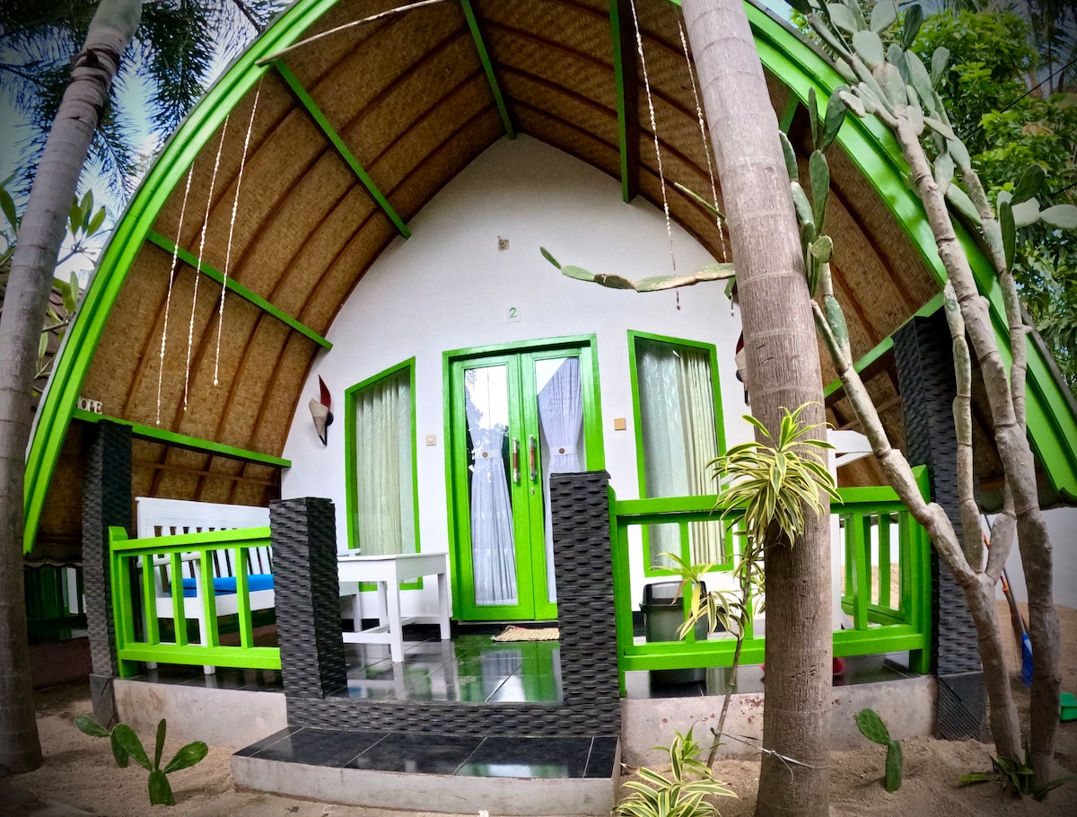 Bienvenue dans nos bungalows, à seulement 3 minutes à pied du port de Gili Meno et du Meno Dive Club, une école de plongée sous-marine très bien notée. Toutes nos chambres sont équipées de la climatisation et de moustiquaires pour une nuit de repos confortable. Veuillez noter que, comme la plupart des endroits sur Gili Meno, nous n'avons pas d'eau douce et nos douches n'ont pas d'eau chaude. Pour le moment, nous ne proposons pas de petit déjeuner, mais nous sommes ravis de vous annoncer que nous prévoyons d'ouvrir un petit café sur place. Il devrait être prêt pour la saison 2026.