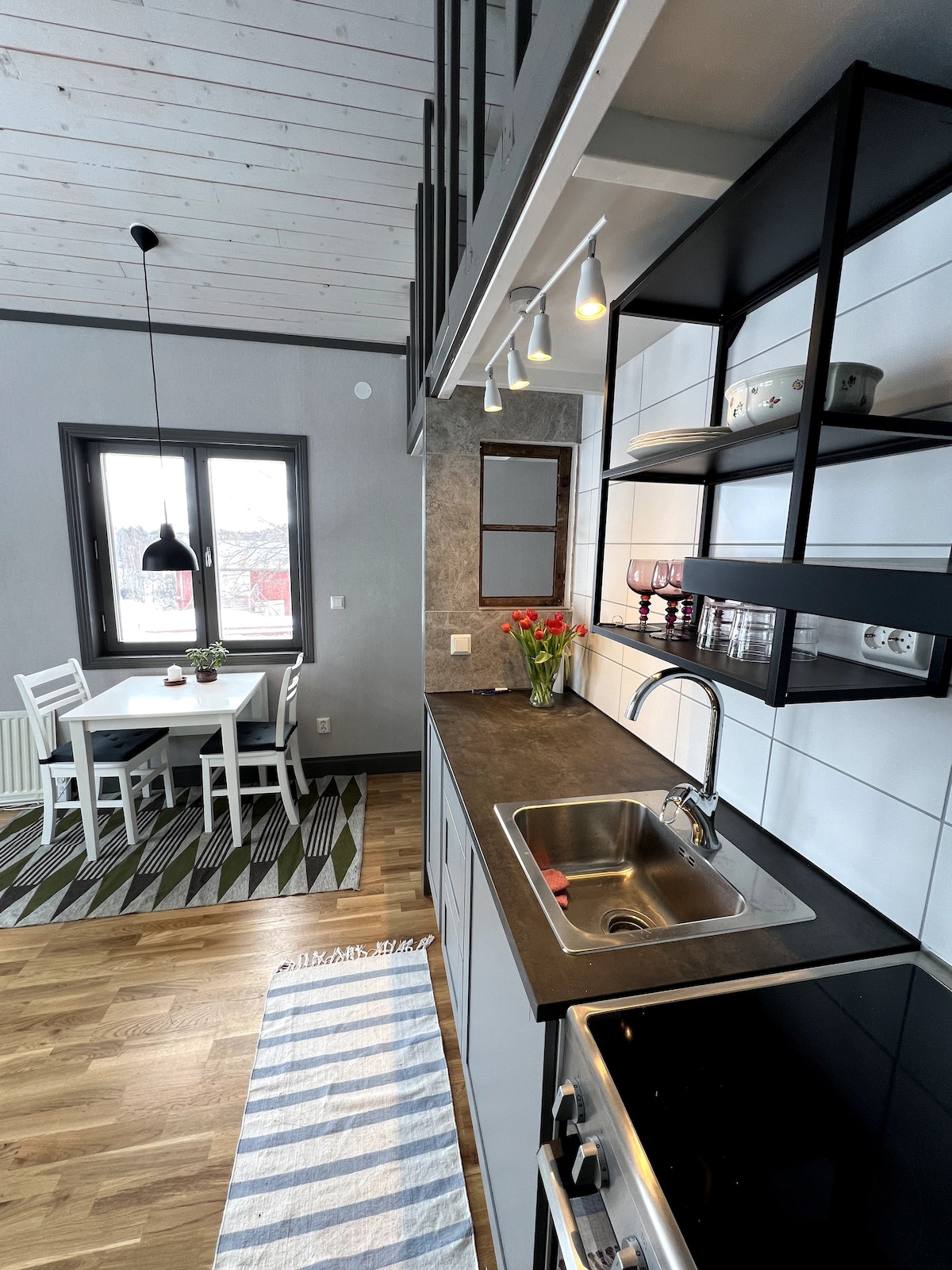 Appartement avec vue fantastique sur le lac et le centre d'Östersund. L'appartement est décoré avec goût dans un style scandinave avec des couleurs vives. Il y a de grandes fenêtres avec des sièges où vous pouvez poser votre regard sur le lac Storsjön, voir le coucher du soleil ou explorer la vue sur la ville d'Östersund. L'appartement dispose de toutes les commodités dont vous avez besoin. De l'appartement, il est proche du lac et de la forêt avec de beaux sentiers de randonnée. Le meilleur moyen de rejoindre le centre d'Östersund est en voiture, à environ 10 minutes.