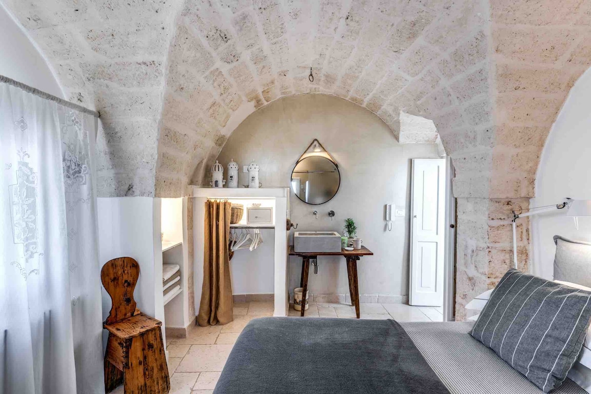 Trullo raffiné indépendant du XIXe siècle au cœur de la vallée d'Itria récemment restauré qui en a conservé l'essence et la simplicité. Un voyage dans le temps entre les oliviers centenaires, les terres rouges et les couchers de soleil qui vous voleront le cœur.
