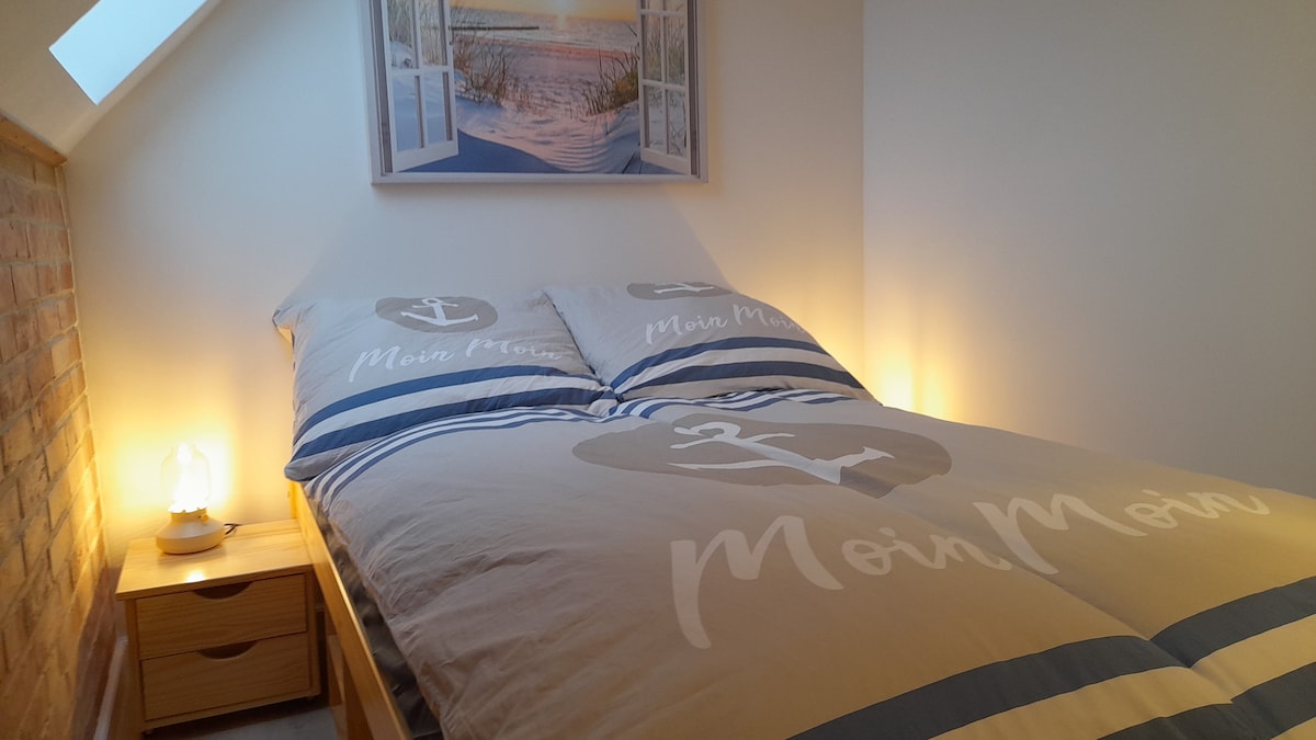 Söhren dans la commune de Weede est calme mais central. Bad Segeberg est à environ 10 km, Lübeck à 25 et la mer Baltique à environ 30 km. Tu trouveras au premier étage d'une maison individuelle 1 chambre avec grand lit double, salon avec canapé-lit gigogne (2 pers), kitchenette et table à manger ainsi qu'une salle de bain avec douche. Il n'y a malheureusement pas de possibilités d'achat ou de restauration ici. Tu voyages avec des enfants ? Pas de problème : un lit d'enfant et une chaise haute peuvent être mis à disposition.