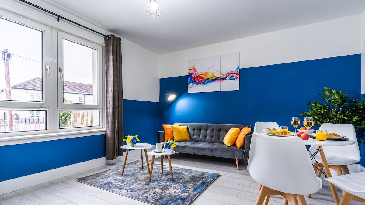 Bienvenue au Penthouse Perché dans le grand Park Circus de Glasgow, cet élégant appartement offre tout ce dont vous avez besoin. - Des intérieurs magnifiquement conçus - Wi-Fi ultra-rapide et commandes de chauffage - Télévision connectée 50pouces pour des nuits confortables à - Café Nespresso & articles de toilette de luxe - Cuisine entièrement équipée pour la restauration autonome. Deux chambres doubles de luxe, à la fois accueillantes et élégantes ! Promenez-vous dans les principales attractions, parcs verdoyants et cafés de Glasgow Adapté aux enfants et aux animaux de compagnie – bairns et amis à 4 pattes sont les bienvenus.
