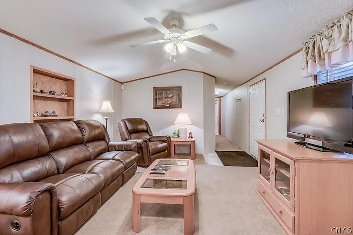 Chalet confortable situé à seulement 15 minutes de Fort Drum ! À UN pâté de maisons de Thompson Park/Zoo et à seulement 10 min en voiture du centre commercial de Watertown ! Les bateaux de pêche rentrent dans l'allée. Le lit est ferme ! Pour tout touriste visitant les attractions de l'État de New York, ou simplement à la recherche d'une maison loin de chez lui, c'est l'endroit idéal ! Deux caméras sont installées : une à l'entrée avant et une à l'arrière. Si vous avez décidé de réserver, veuillez indiquer si vous aurez des invités et combien de véhicules vous aurez, deux véhicules maximum !