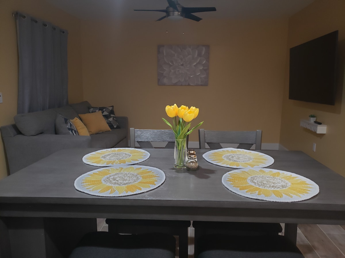 Maison d'hôtes Casita d'une chambre avec lit Queen Size. Séjour séparé avec cuisine complète. Salle de bain complète avec douche à l'italienne. Télévision 50 pouces dans le séjour et télévision 32 pouces dans la chambre. Notre casita dispose du wifi. Tout est tout neuf ici, y compris un nouveau remodelage. La Casita est très privée par rapport à la maison principale et dispose de son propre parking et de son propre espace extérieur. Lave-linge et sèche-linge dans le logement avec tout ce dont vous avez besoin pour profiter de votre séjour. Emplacement idéal près de South Mountain, de l'aéroport et du centre-ville.