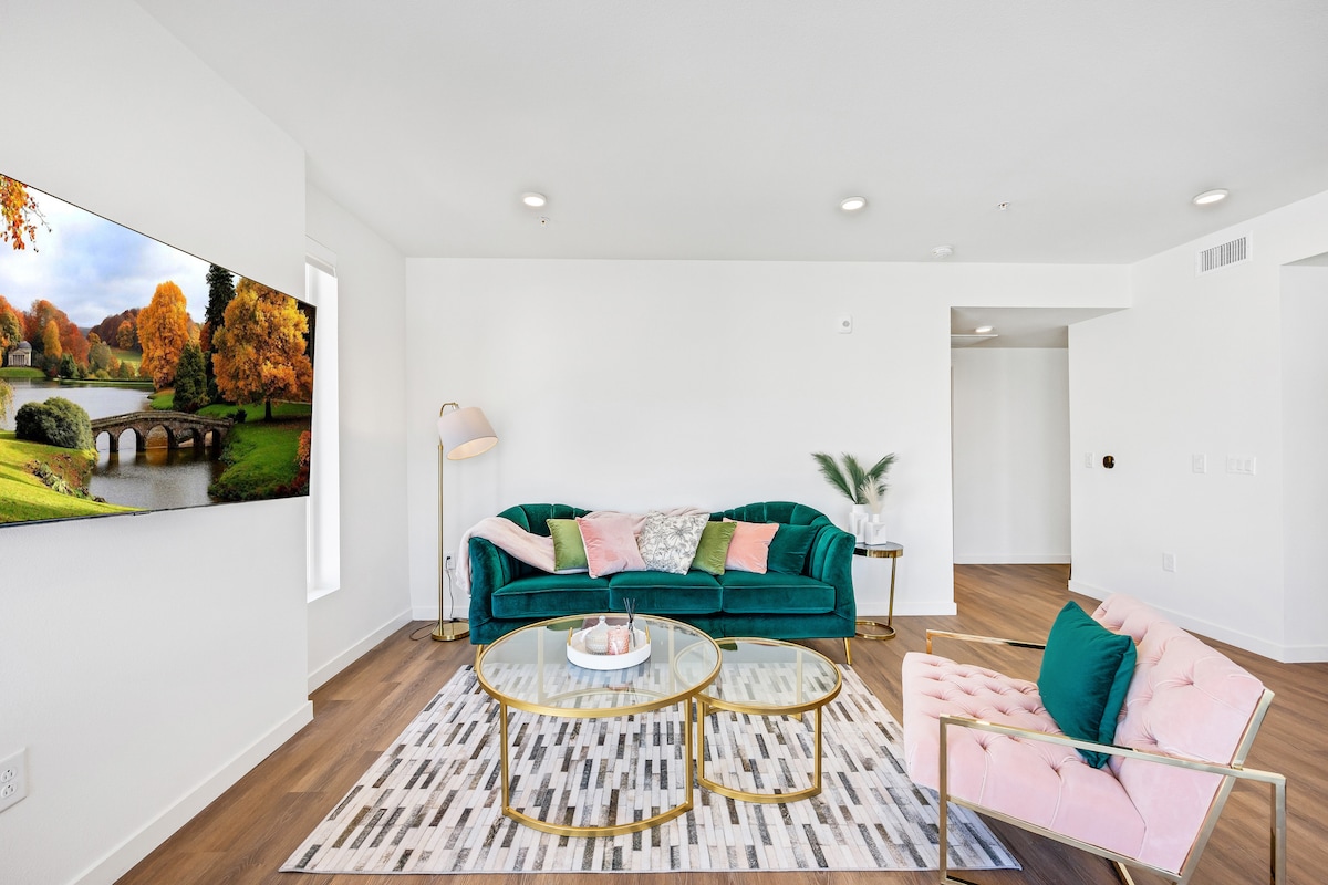 Un appartement d'angle avec une énergie de rock-star qui surplombe le boulevard Santa Monica, qui abrite la Route 66 historique. Le traitement vedette se déploie avec des meubles en velours, un tapis de famille remarquable, une console d'enregistrement Wrensilva et une crédence en bois vintage qui plaît à la foule. Un grand lit king size vous invite à demander un départ tardif, et le spacieux bureau en bois garde toutes vos affaires prêtes en attendant. Niveau sonore : moyen Emplacement : Dernier étage Vue : rue