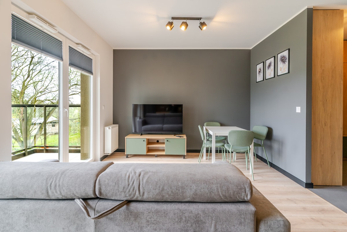Nouvel appartement de 44 m2 avec une grande terrasse de 140 m2, rez-de-chaussée. L'appartement est entièrement équipé. Arrivée autonome :) L'appartement est situé au centre - Arène Prezero - 1 km - Université de technologie - 0,5 km - Place du marché - 1 km - Kaufland - 0,2 km Hébergement pour dormir - chambre un grand lit 160 cm - grand canapé d'angle dans le salon avec fonction couchage + deux lits simples - possibilité d'ajouter un espace de travail Internet, télévision connectée 70 pouces Je vous invite cordialement – paix et confort vous attendent :)
