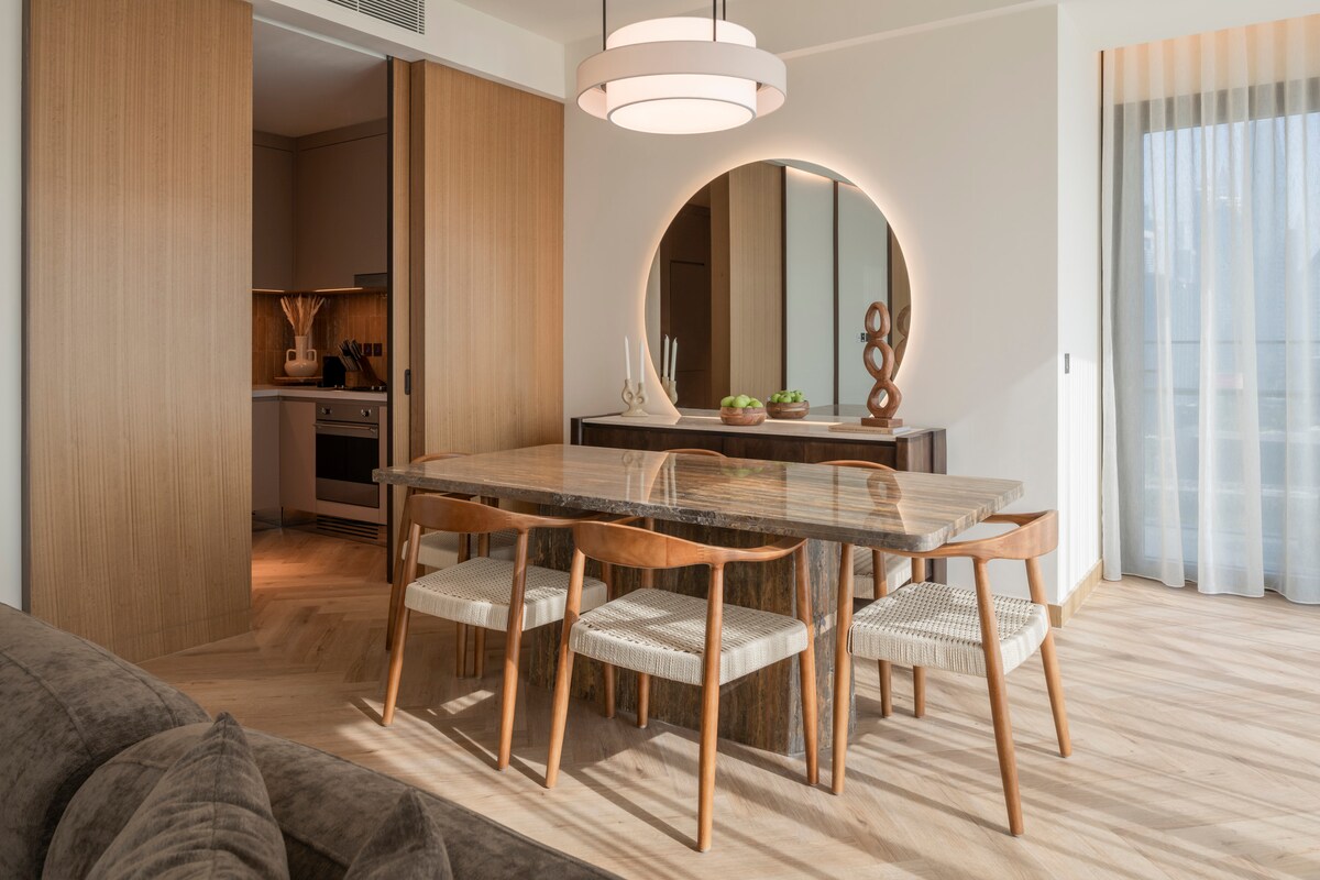 Notre appartement familial d'une chambre au design bien pensé est situé au cœur de Palm Jumeirah de Dubaï, juste en face du célèbre centre commercial Nakheel. L'appartement dispose d'une cuisine entièrement équipée et est situé dans un hôtel de style de vie 5 étoiles entièrement équipé, l'Andaz Dubai The Palm by Hyatt. L'appartement vous donne accès à une gamme d'équipements, tels que l'accès à la plage de la communauté et à la piscine familiale surplombant Burj Al Arab, plusieurs restaurants et espaces de détente réservés aux adultes (Ora Spa).