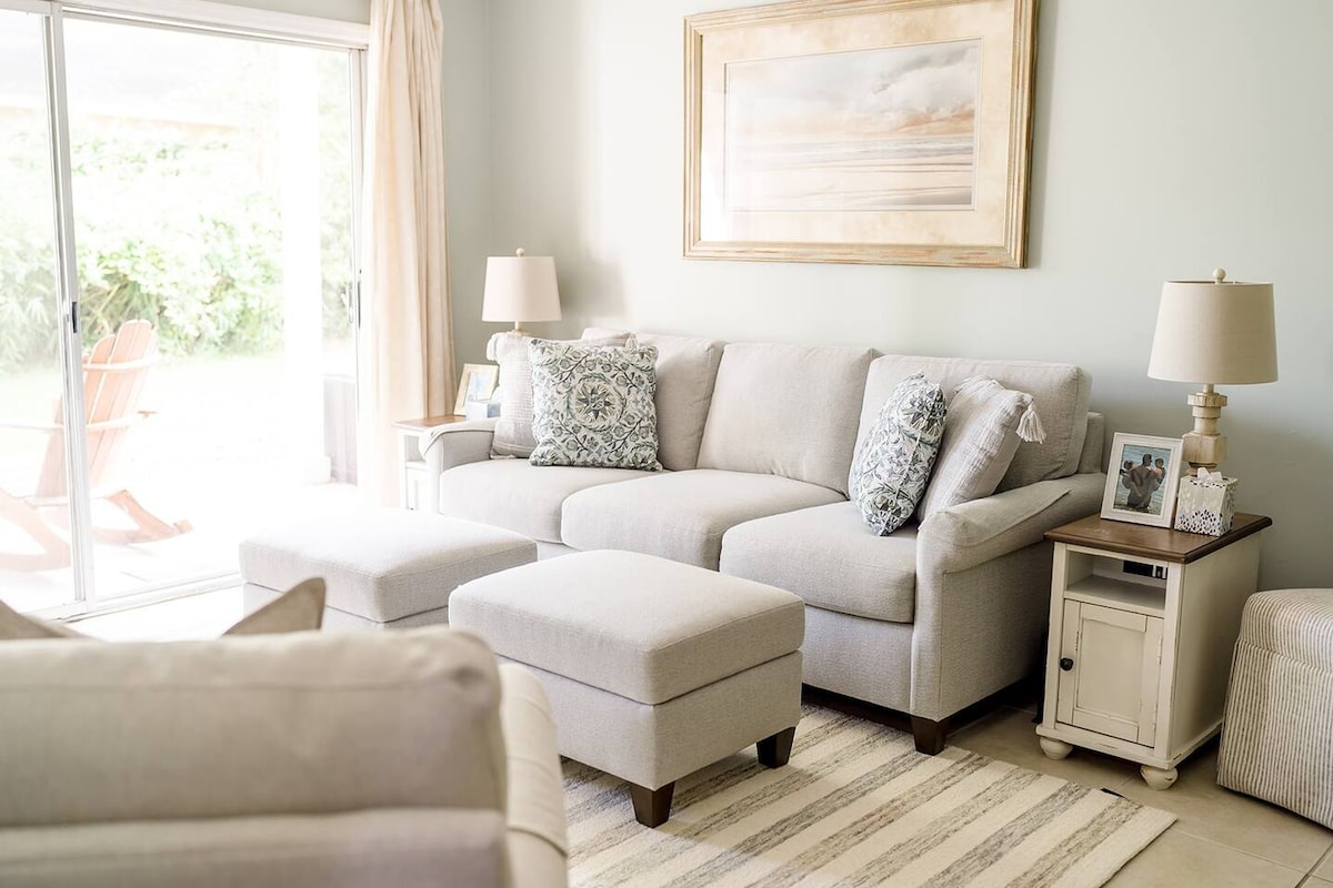 This serene ground floor 3 bedrooms and 2 bathrooms condo available on St. Simons Island. We live up to our name “Ocean Vibes Retreat”. You walk in and see all the upgrades and new furnishings this home has to offer for you and your group. The complex is gated and located in walking distance to many restaurants, Redfern Village, and one of our grocery stores. We also offer a pool, workout room, tennis court and play ground. Come stay and let the salt air cure what ails you!
