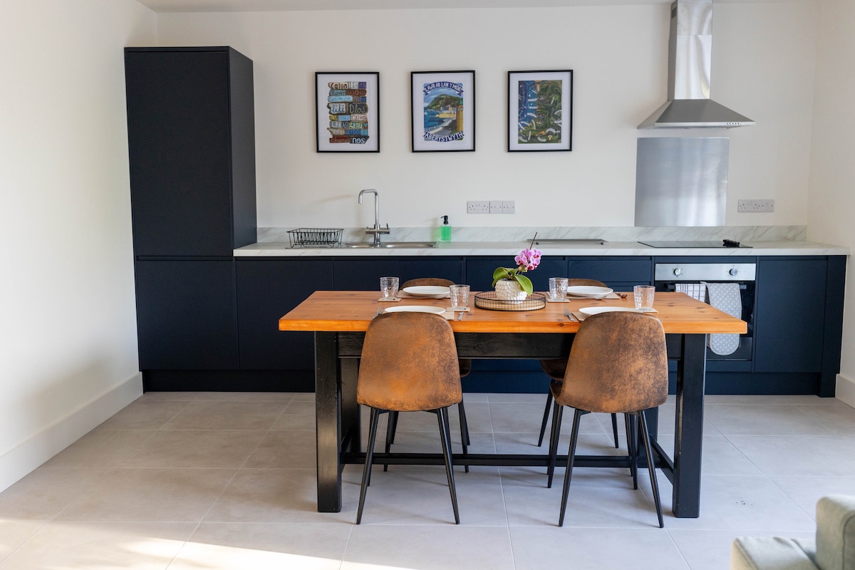 Experience the ideal seaside getaway in our newly renovated ground-floor apartment. With stunning sea views, a well-equipped kitchen, smart TV, and fast WIFI, you'll have everything you need to relax and unwind. Enjoy a luxury king-sized bed overlooking a stone courtyard. Only steps away from the beach, and a short five-minute walk to the town centre and train station. Easy access to all the shops, bars, and eateries Aberystwyth has to offer. The perfect setting for an idyllic seaside getaway.