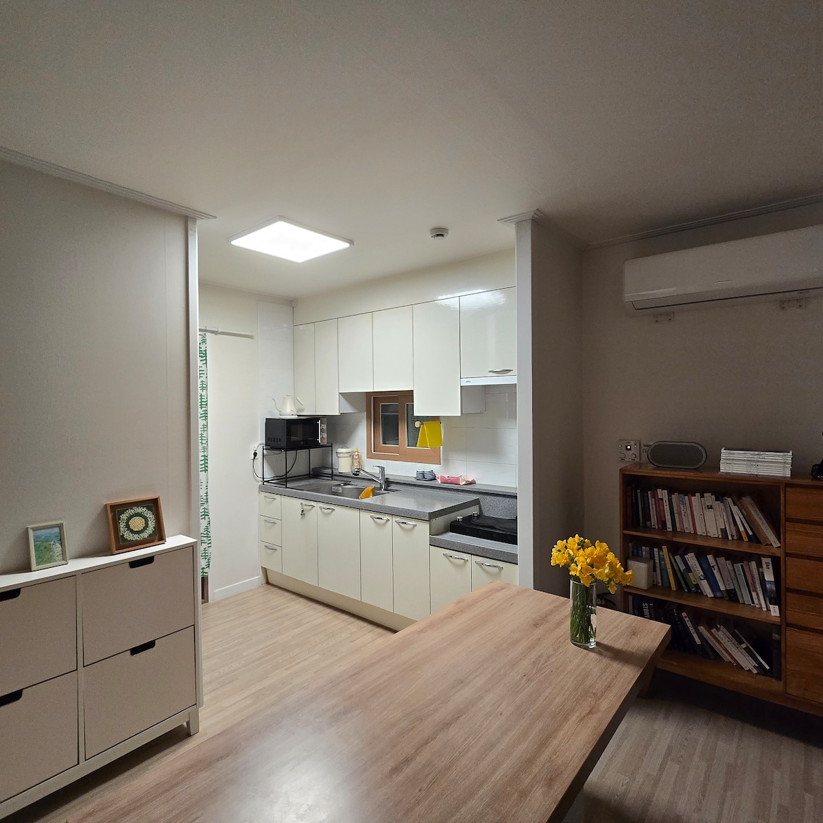 Profitez d'un repos complet dans une petite annexe au cœur du village tranquille de Gurye. Il y a les Samkats, un couple d'hôtes et un chien appelé Half Moon dans la maison principale. L'annexe, qui est un hébergement, est une vieille maison qui a été rénovée en utilisant les chevrons d'une vieille maison de 50 ans. C'est bien pour les gens qui aiment les livres et les chats et qui veulent se reposer tranquillement. Jirisan Dulle-gil et la promenade de la rivière Seomjin sont proches. * La maison est dans le centre du village, alors veuillez vous abstenir de faire du bruit excessif car cela peut être une excuse pour les villageois. * Il n'y a pas de télévision et pas de wifi dans la maison. * Il s'agit d'une kitchenette avec une plaque à induction individuelle et un brûleur portable, seule une cuisson simple est donc possible. * C'est une maison de campagne, donc même si vous êtes en quarantaine, des insectes peuvent sortir de temps en temps. De plus, le pou du voisin est gros à l'aube, donc si vous avez le sommeil léger, veuillez en prendre note avant de faire une réservation. Lorsque vous utilisez le barbecue, veuillez apporter du charbon de bois et une plaque de cuisson jetable et apporter des légumes du jardin confortablement. Veuillez préparer du bois de chauffage lorsque vous utilisez le foyer.