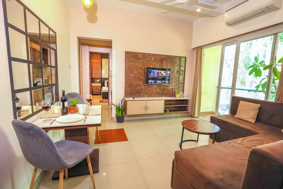 ♂Installez-vous dans le confort d'un studio élégamment conçu, encore plus grand que n'importe quelle chambre d'hôtel, avec l'avantage de sa propre cuisine attenante, au cœur de Gomtinagar. Ce studio moderne au 2e étage est idéal pour 4 personnes. Ses grandes baies vitrées et ses balcons en verre s'ouvrent sur la verdure et l'agitation autour de la propriété. Centres commerciaux, supermarchés, restaurants, magasins, blanchisseries, etc. sont à quelques pas de cet endroit, pour votre confort.