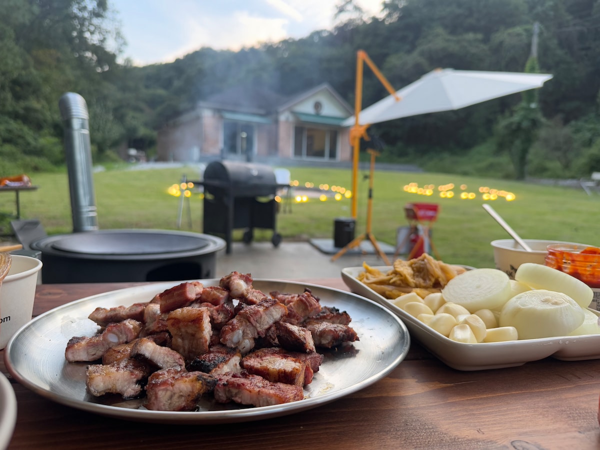 ❤️ Nous visons un hébergement où vous pourrez profiter du romantisme du camping et du confort d'une pension en même temps. Pour que vous puissiez profiter de camping émotionnel et de soirées barbecue, J'aurai du bon bois de chauffage, du charbon de bois, un barbecue et un bon endroit. Je suis sérieux au sujet 🥩de la viande, donc j'ai un barbecue, etc. Divers grilles disponibles Les 🌿 voyageurs disposent de tout le premier étage et de la cour avant. 🐕 Animaux acceptés, 10 000 KRW par animal, jusqu'à 2 animaux Nous prenons un soin particulier de la propreté du logement pour que les 🌿 voyageurs puissent se détendre. Toute la literie est lavée et séchée à l'air chaud à chaque fois 🌿 Arrivée 15h/Départ 11h Heures de barbecue jusqu'à 21h Après 21 h, emménagez dans la cour d'entrée ou à l'intérieur pour discuter ^ ^ Bullmung Zone (cour avant) heures jusqu'à 23h30 Frais de départ 🌿 tardif : 10 000 won par 30 minutes, disponibles jusqu'à minuit. Pas de frais supplémentaires pour 🌿 les bébés de moins de 24 mois. Les autres enfants et visiteurs sont également inclus dans le nombre d'invités. Frais de chambre supplémentaires de 20 000 KRW par personne