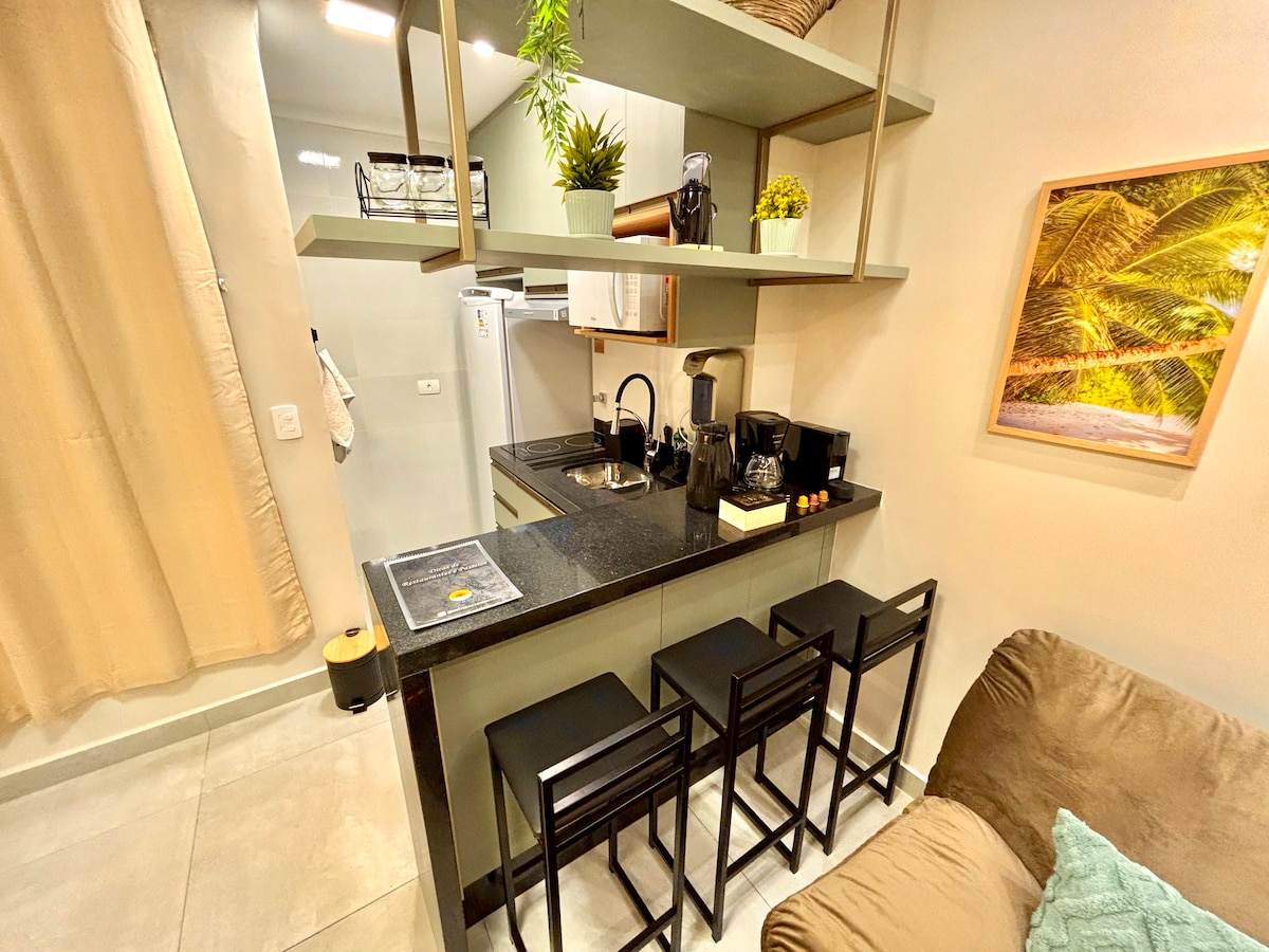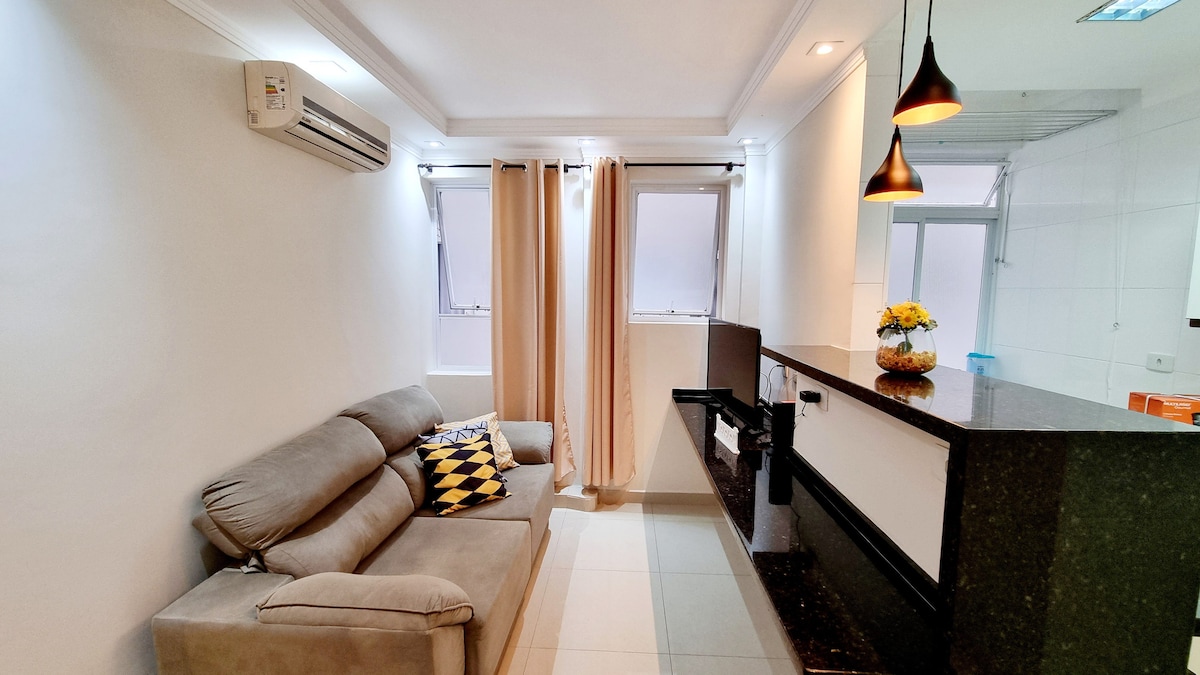 This 55m² apartment is ideal for couples and executives on business trips. It has everything you'd expect from an apartment: practicality and technology. For those coming to spend New Year's Eve in Santos, you can enjoy the festivities without even leaving the building. From the pool area, you can enjoy the sea view, the fireworks, and the city's festive atmosphere without having to deal with traffic, crowds, or a tiring commute after the fireworks.
