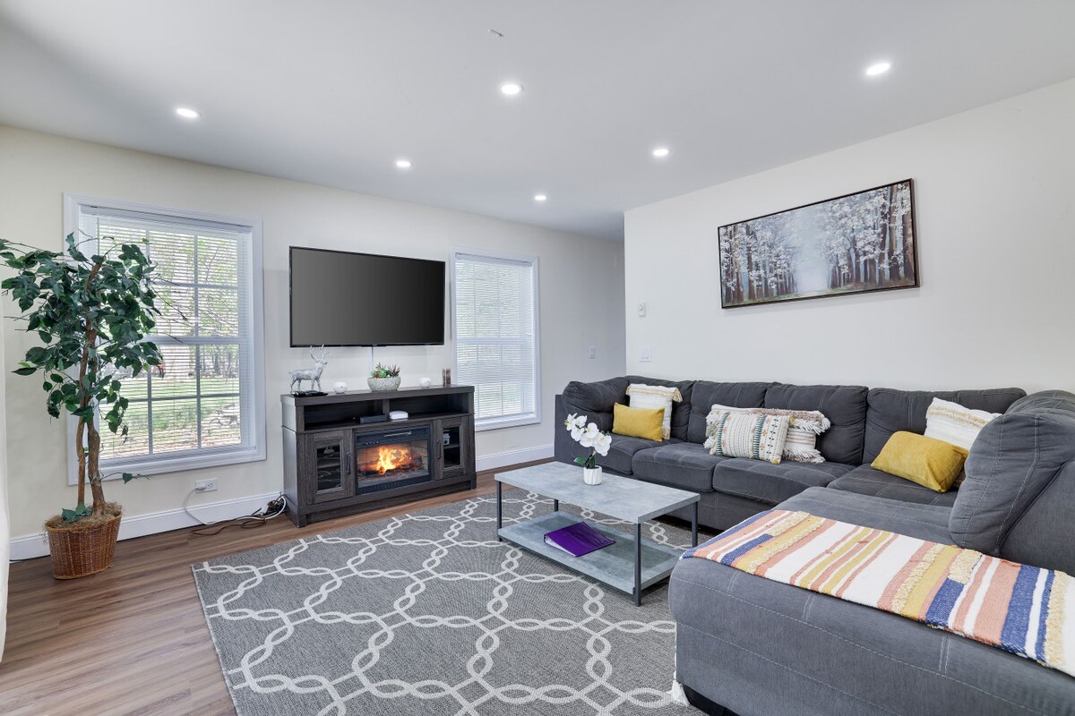 Évadez-vous dans une escapade d'automne confortable près de Kalahari, du casino Mount Airy, des magasins d'usine Crossings, du lac Wallenpaupack et du parc d'État de Tobyhanna à 2 miles avec des feuillages d'automne, de l'air de montagne, des vues sur le lac, de la faune et des lieux de pique-nique. Niché sur une route privée accidentée. Cette retraite de style spa dispose d'une baignoire, d'une douche à effet pluie, de lumières intelligentes, d'une cuisine avec cuisinière intelligente, de lits moelleux, de miroirs LED avec synchronisation musicale et d'un divertissement d'arcade rétro. Parfait pour les couples, les escapades d'anniversaire ou les familles à la recherche d'un séjour paisible à Poconos avec des équipements modernes.