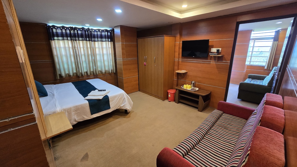 Appartement de 2 chambres au rez-de-chaussée d'une maison situé presque au sommet d'une colline dans un quartier résidentiel calme (à l'écart de l'agitation de la ville)avec une vue très panoramique et à environ 15 min à pied du centre-ville. Petit déjeuner NON fourni, mais on peut commander ou cuisiner soi-même, pour les autres repas, on peut commander à partir des différentes options de livraison disponibles en ville. La vue depuis CHAQUE CHAMBRE est du pic de la doddabetta,le plus haut sommet du sud de l'Inde. Il y a une petite pelouse accessible aux voyageurs aussi