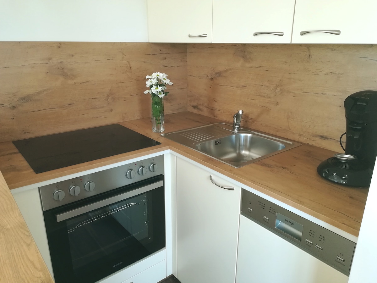 Our brand-new, tranquil 40 m² apartment is within walking distance of the centre of Strobl and Lake Wolfgang. From the balcony, you have a wonderful view of the surrounding mountain landscape. We provide you with a fully equipped kitchen (microwave oven, stove, dishwasher), children cots, air condition, a washing machine with a dryer, a towel radiator, a bathtub for a relaxing bath, and a garage parking space. For your entertainment or home office needs, we have a Smart TV and fast Wi-Fi.