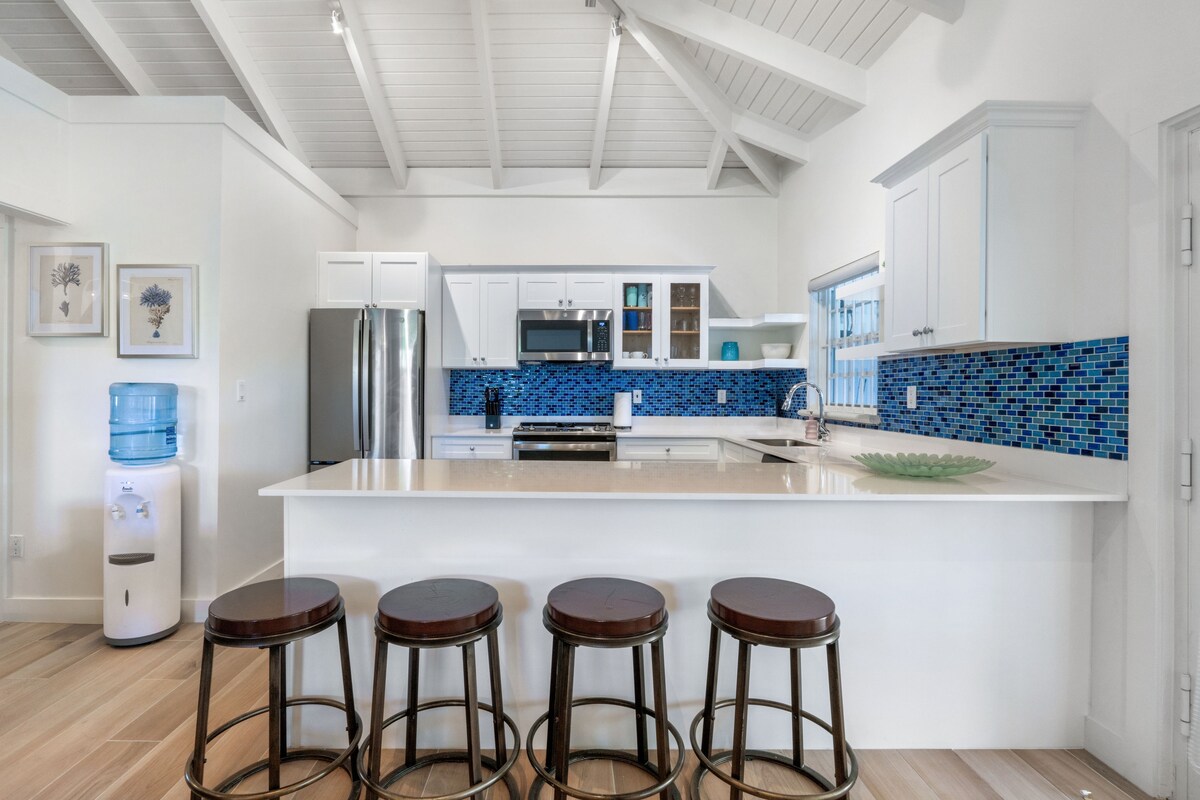 Détendez-vous dans cet espace calme et élégant. Cette maison moderne de 2 chambres et 2 salles de bain est nichée le long du paisible Chalk Sound, offrant une retraite paisible avec une vue imprenable. LOIN de l'agitation de Grace Bay, il s'adresse aux voyageurs qui cherchent à se détendre et à se ressourcer. Profitez d'un séjour spacieux, de finitions élégantes et d'une vue imprenable sur l'eau depuis presque toutes les pièces, parfaites pour ceux qui recherchent confort et tranquillité. 15 minutes de l'aéroport À 20 minutes de Grace Bay À 5 minutes de Taylor Bay et de Sapoddila Bay Beach