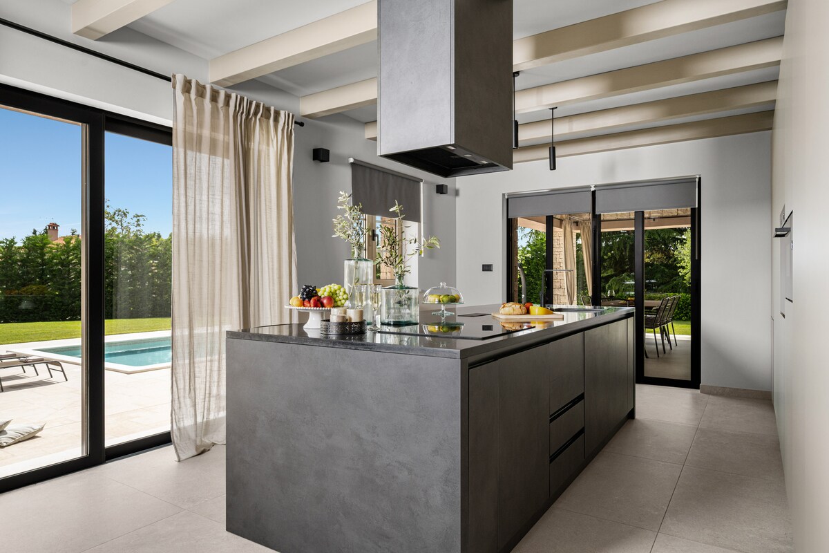 Découvrez la Villa Mochi à Pićan, une luxueuse villa de 2 étages mêlant élégance moderne et nature sereine. L'intérieur de 205 m ² dispose de 4 chambres élégantes, chacune avec une télévision, 6 salles de bain, deux salles à manger et une cuisine entièrement équipée. À l'extérieur, profitez d'un jardin privé de 900 m ² avec piscine impeccable, fontaine moderne, chaises longues, parasols et une terrasse ombragée avec barbecue. Détendez-vous avec la climatisation, une connexion Wi-Fi gratuite, un lit bébé et un parking sécurisé.