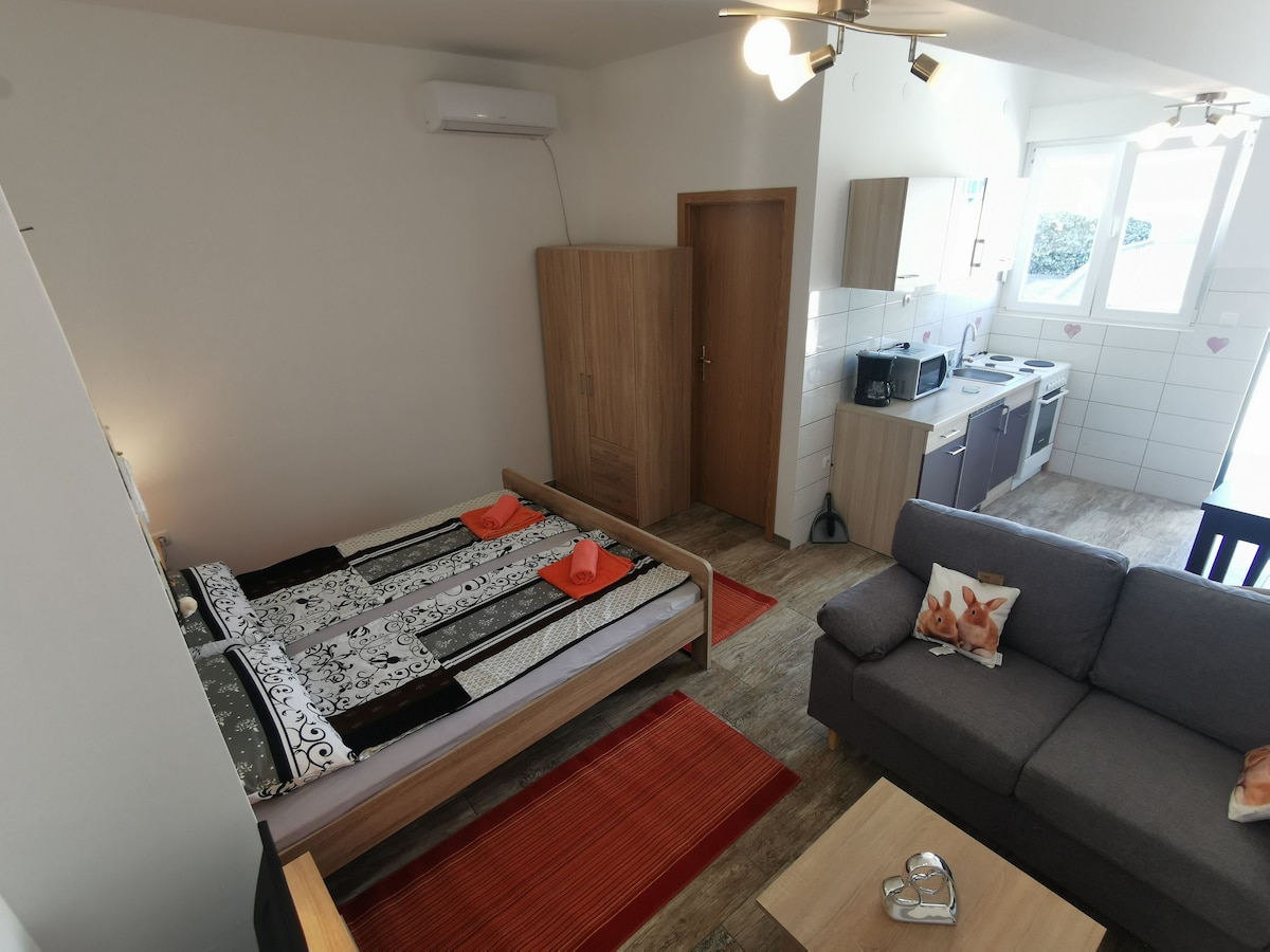 Petit appartement mais adapté, absolument neuf pour deux au cœur de la Dalmatie. Avec notre hôte Nenad, vous ressentirez les charmes de cet endroit. Très calme, sans foule excessive, un peu plus loin du centre. Offrez-vous le reste que vous méritez. Entre Split et Trogir, ville nommée Kaštela ! Il y a un parking gratuit et une immense table à manger extérieure pour vous et pour vos amis si vous voulez les inviter !