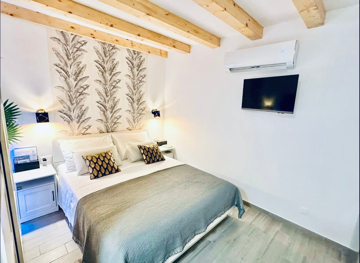 The gorgeous renovated apartment for two is located in the quiet heights of the harbor area. A few steps up from the ferry jetty you will have your own oasis overlooking the bay and the islands. Beaches, restaurants and lively cafe terraces are only a few minutes walk away. Air-conditioning and free WiFi.