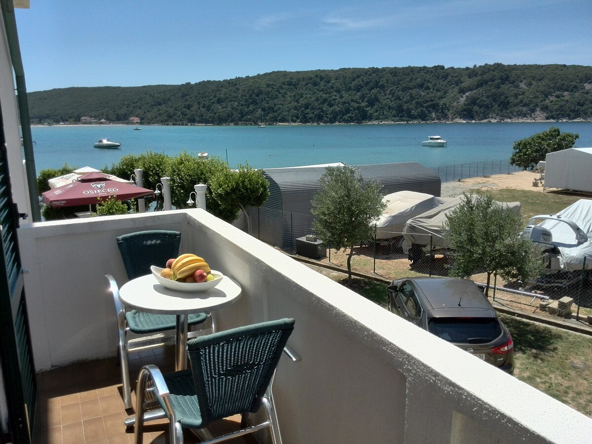 L'appartement est situé sur l'île de Rab, à seulement 20 m de la mer, et offre à ses clients un endroit avec une terrasse, la télévision par satellite, le wifi et un parking privé. nous avons un endroit où passer du temps et un barbecue derrière la maison. et devant la maison, nous avons une petite belle plage, un endroit pour se reposer, des chaises longues ou une grande table en bois pour socialiser au bord de la mer Bienvenue.