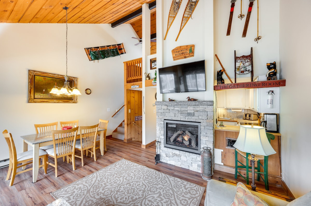 Mis en avant par sa proximité avec l'aventure en plein air, les équipements de la communauté et l'espace intérieur confortable, cette retraite Lincoln est parfaite pour votre prochaine escapade dans le New Hampshire ! Cette location de vacances de 3 lits et 2 salles de bain dispose d'une cheminée confortable et d'une cuisine complète, ainsi que d'un porche arrière fermé où vous pourrez vous détendre avec vue sur les bois. Descendez les pistes du Loon Mountain Resort ou explorez des sentiers de randonnée pittoresques dans les Montagnes Blanches ! Plus tard, vous pourrez allumer le barbecue électrique pour le dîner et vous détendre avec un film au coin du feu.