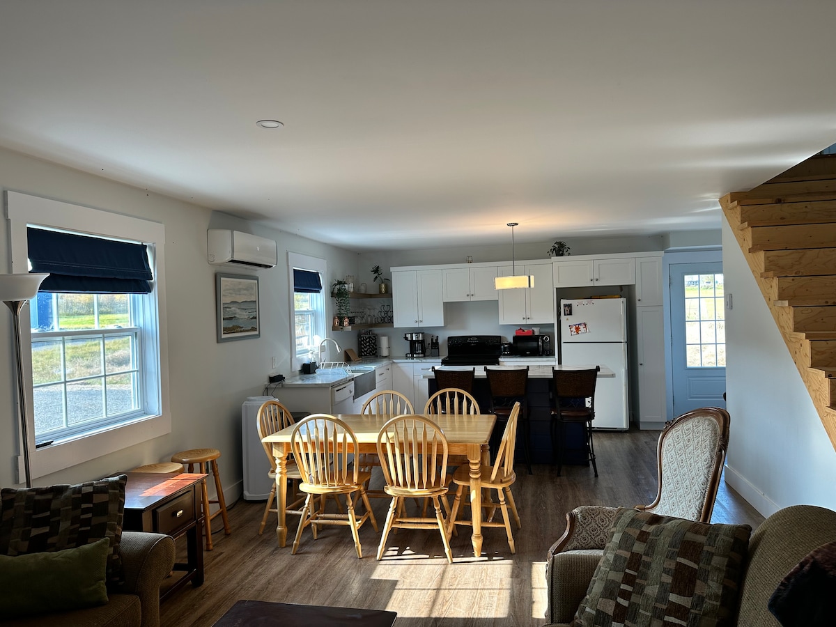 Il y a une vue fantastique sur la rivière Kennebecasis depuis ce magnifique chalet en cèdre au bord de l'eau. C'est calme et privé. À l'intérieur, vous trouverez un intérieur rustique en bois avec tous les équipements d'un logement standard. Un bain à remous vous attend en haut de l'escalier en colimaçon dans le loft de la chambre principale. Nous aimons commencer notre journée avec un café sur la terrasse avant, en profitant de la vue depuis les chaises adirondack. Lancez vos kayaks au bord de l'eau. Profitez des feux de camp en soirée.