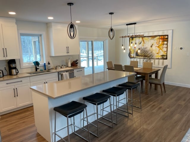 Profitez de vacances paisibles et relaxantes avec toute la famille dans ce magnifique nouveau chalet. Le spacieux salon voûté vous coupera le souffle dès que vous franchirez la porte d'entrée. L'attrait moderne et net du chalet vous donnera envie de revenir. Le chalet a tout ce dont vous avez besoin pour vous éloigner de l'agitation de la vie et profiter de moments de qualité passés avec votre famille et vos amis. Il se trouve à seulement 7 minutes à pied de Sunset Beach et à 7 minutes en voiture de Grand Beach.