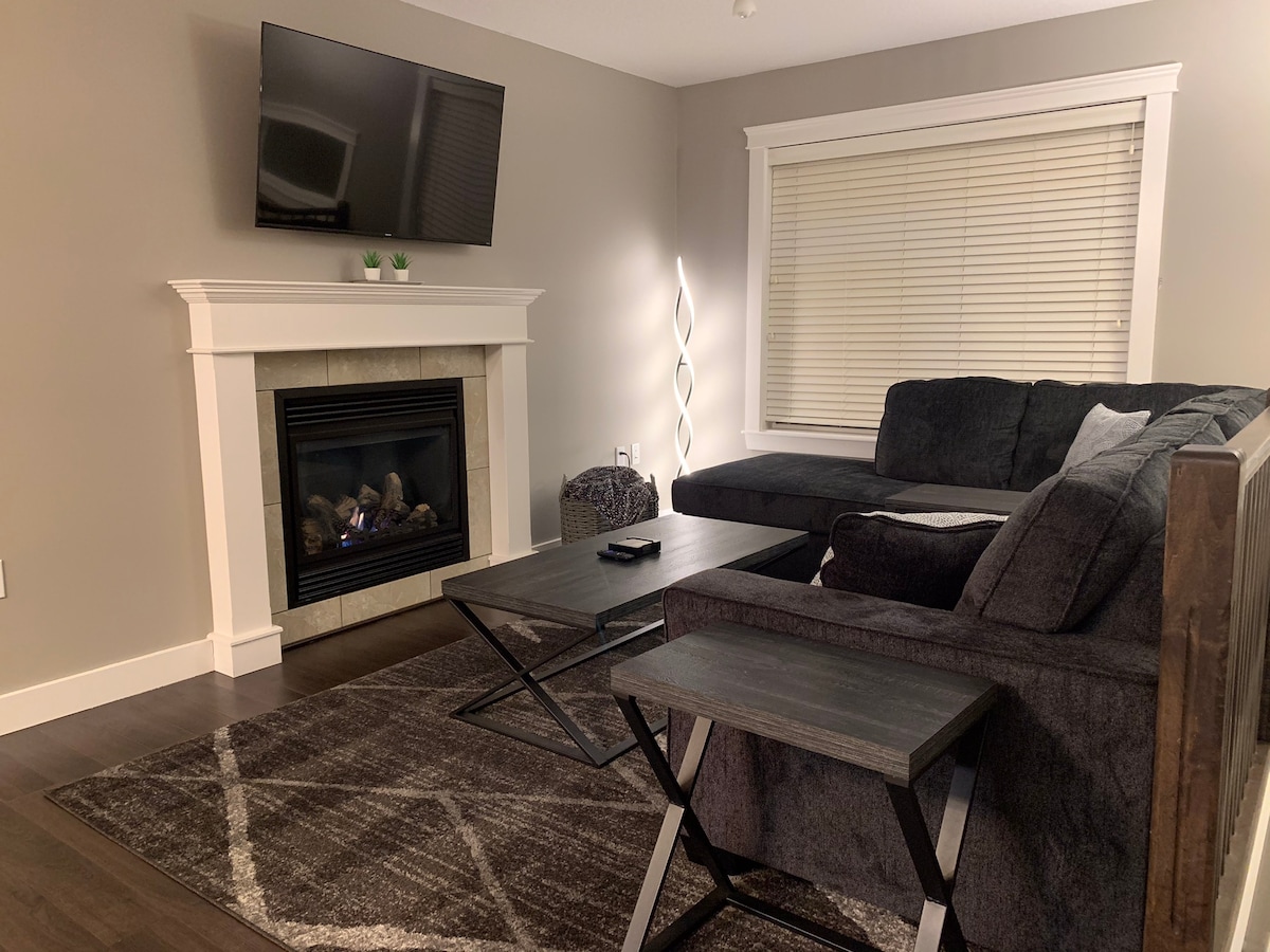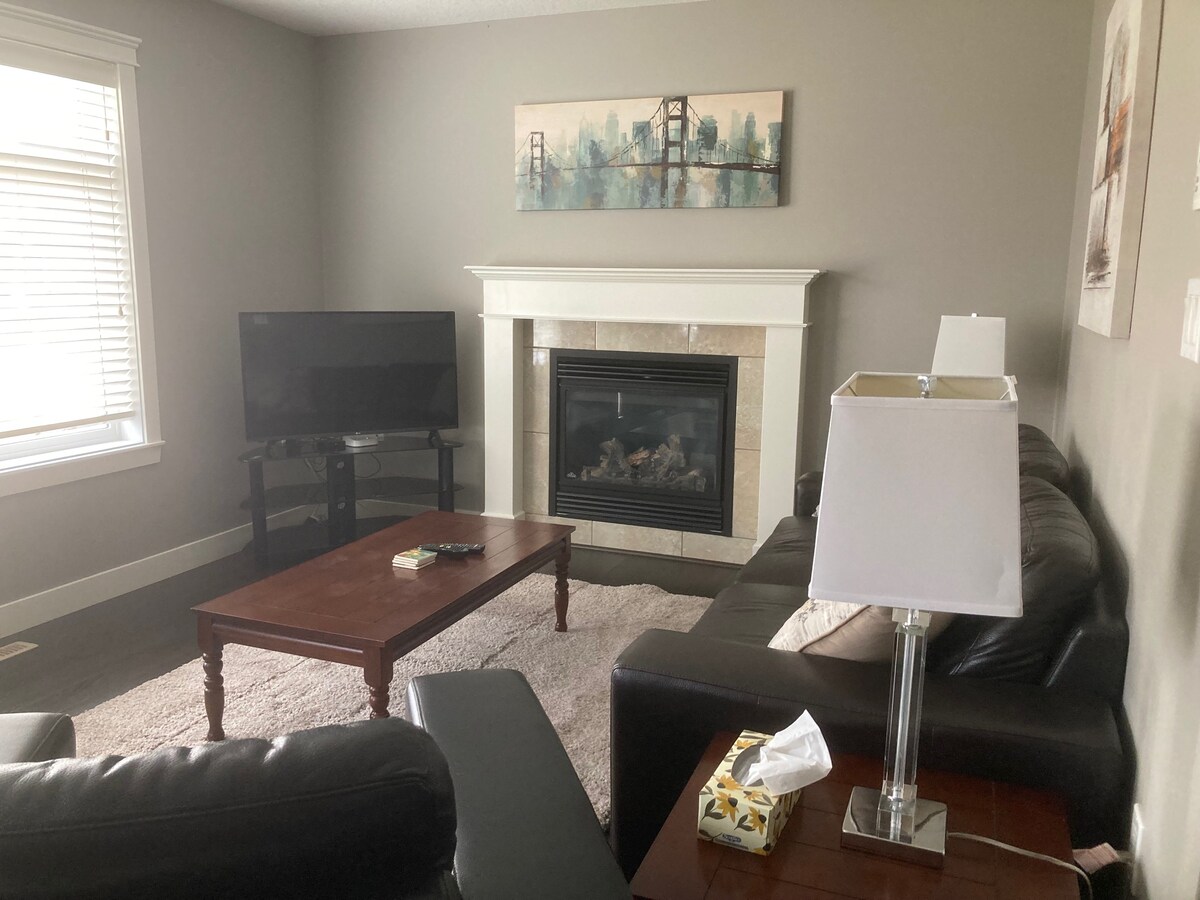 Cet hébergement élégant est parfait pour les groupes. À distance de marche de l'épicerie et des restaurants. Cette maison acceptant les animaux de compagnie offre tout ce dont vous avez besoin. Entièrement équipée, lumineuse et spacieuse ! Cet endroit dispose de quatre chambres qui ont toutes des lits Queen Size, deux salles de bains et deux espaces de salon complets. Cela fait de cette maison l'espace parfait pour les familles. Cette maison comprend un grand espace de stationnement pour deux grands véhicules, une grande cour arrière et un espace pour barbecue. Peut accueillir un total de 9 personnes avec canapé-lit.