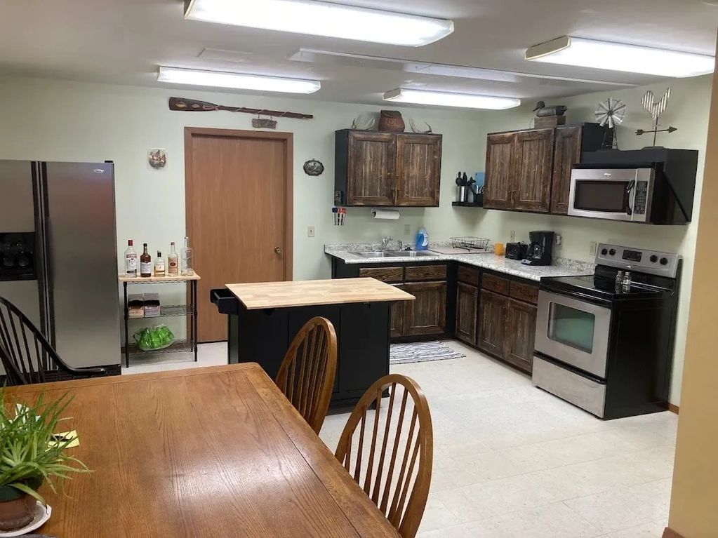 Profitez d'un accès facile à la pêche et à la chasse sur les lacs glaciaires. Terrain public et un lac à seulement 2 miles. Le Lodge est aménagé en pensant au sportif. Cages intérieures pour chiens, zone de nettoyage du poisson et du gibier et un grand espace pour se détendre après la pêche, la chasse ou toute autre raison qui vous a amené. Cuisine complète, 5 chambres, 1,5 salle de bain, lave-linge et sèche-linge et télévision par satellite à votre disposition.