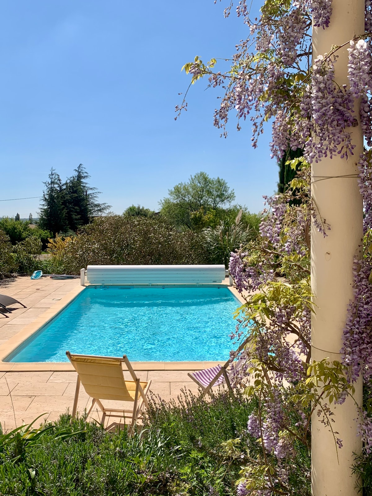 Située dans un domaine datant du 17 ème siècle, La Maison des Orangers est une ancienne magnanerie qui surplombe la vallée et offre un panorama éblouissant. Le calme absolu et les nombreuses vues sur la nature sauvage et majestueuse, font de cette maison le lieu parfait pour vous ressourcer . Il y a 3 niveaux et des escaliers. 📌Les draps de lits, serviettes de bains sont fournis. 📌Location du samedi au samedi (juillet-août ) 📌Piscine ouverte de Mai à Septembre 📌Jacuzzi privatif