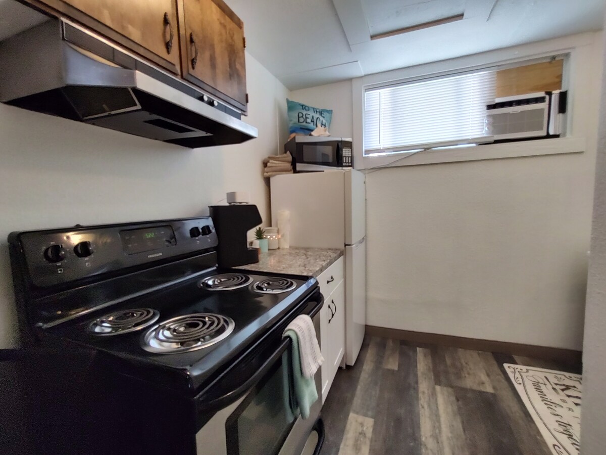 Bienvenue dans notre tout nouvel appartement d'une chambre et d'une salle de bain. L'espace impeccable avec buanderie est parfait pour les voyageurs qui rendent visite à leur famille ou qui traversent la région. Nous avons 1 lit Queen Size et 1 canapé-lit Queen Size ; l'appartement peut facilement accueillir un groupe de 4 personnes. L'espace est idéal pour un couple ou des amis voyageant dans la région. C'est également une excellente option pour les infirmières ou les travailleurs itinérants à la recherche d'un séjour de courte ou longue durée. Veuillez vous renseigner sur une option de location mensuelle pour les professionnels en déplacement.