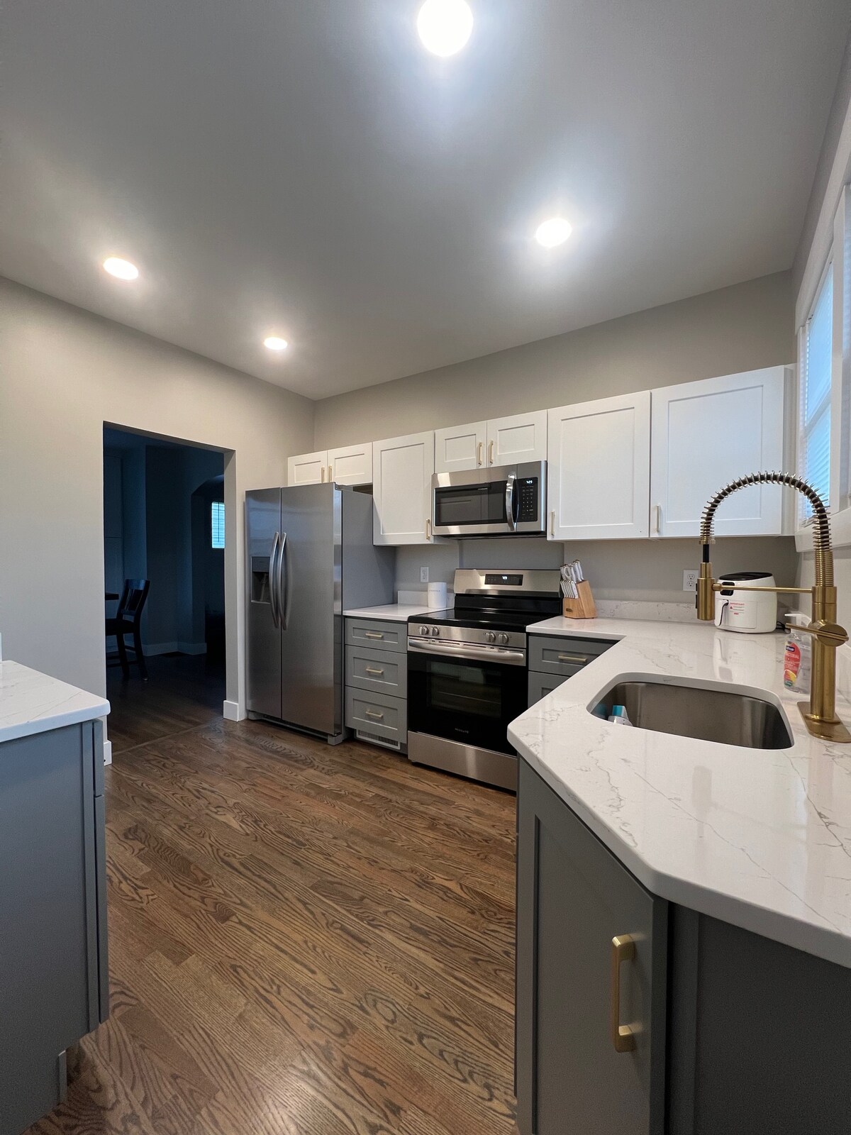 Maison de ville élégante entièrement rénovée de 3 chambres pouvant accueillir 8 personnes. Situé à 2 minutes du centre-ville de Cincinnati et Village de Mainstrasse. À moins de 5-10 minutes de la plupart des principales attractions. À 10 minutes de l'aéroport et à 35 minutes de Ark Encounter. Marchez jusqu'aux stades. Une cuisine entièrement approvisionnée, du café et une cafetière, une terrasse avec vue sur la ville, un porche arrière fermé par un écran. Allée pour le stationnement hors de la rue et stationnement gratuit dans la rue. Blanchisserie et wifi gratuits sur place. Vous aimerez les équipements et la commodité autant que nous !