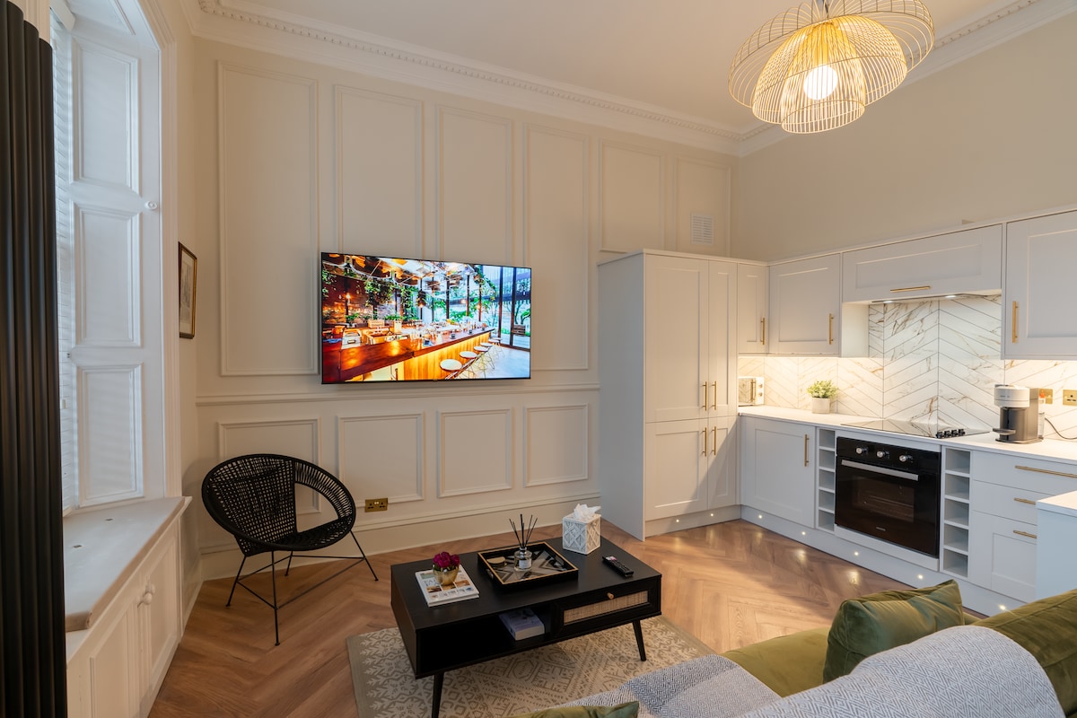Offrez-vous un séjour vraiment luxueux dans cet appartement exclusif, conçu pour le confort, la détente et des moments inoubliables. Parfaitement située à proximité de tout, cette superbe retraite permet d'explorer sans effort tout en profitant d'une intimité totale. Paroi vitrée | Douche à l'italienne | Terrasse extérieure | Grande télévision connectée avec Netflix | Articles de toilette | Couette et oreillers en plumes de canard | Cuisine | Lit super king size Cet endroit spécial est proche de tout, ce qui facilite la planification de votre visite