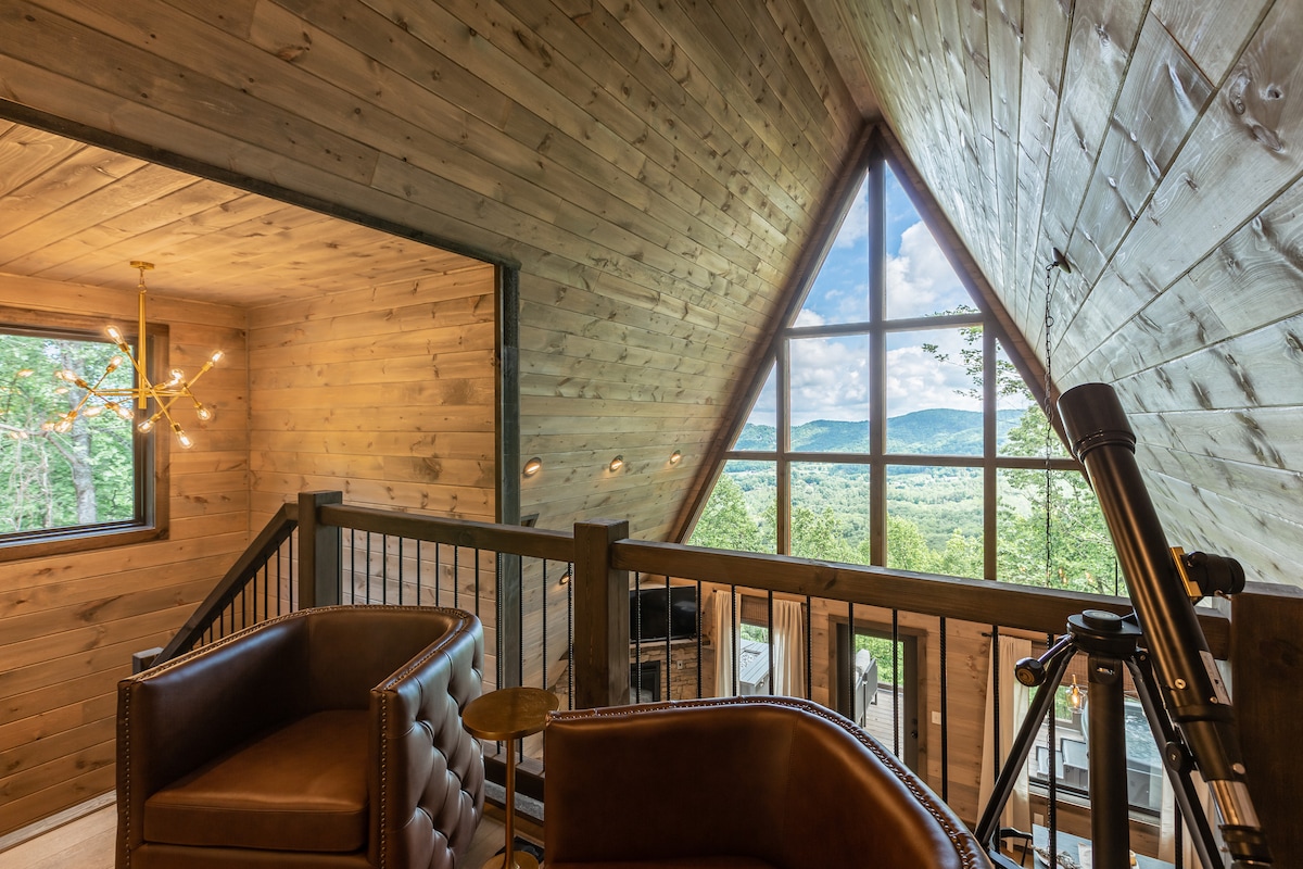 Cabane perchée dans les monts Great Smoky, vue, jacuzzi en cèdre