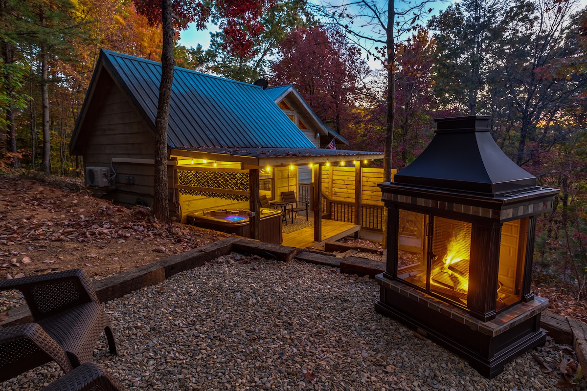 1 acre de bonheur privé et paisible ! Nouveau téléviseur 65 pouces, draps, stock de cuisine, lave-linge/sèche-linge, cafetière, café, thé. Beaucoup de serviettes, des tonnes d'oreillers, des couvertures, du shampoing, de l'après-shampoing, du savon, un jacuzzi, un bain à remous, un porche couvert, une terrasse, un foyer et bien plus encore ! Vous n'aurez pas besoin de partir ! Épicerie livrée ! Proche du vignoble, du café, des restaurants, vous pouvez marcher, mais vous aurez l'impression d'être seul !! Cades Cove, montagnes à quelques minutes ! Pistes cyclables, randonnée, rafting et kayak ! Réductions, oui