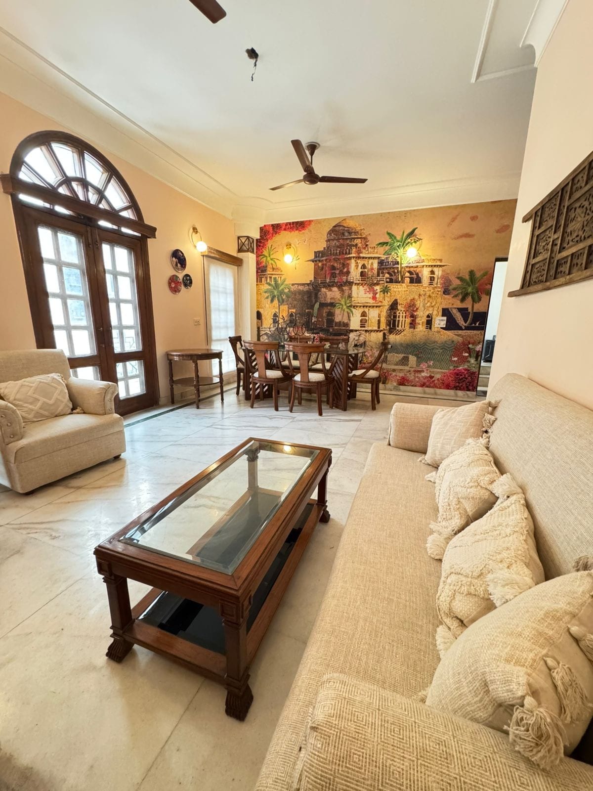 Chez « H is for Home », nous proposons un appartement privé de 3 chambres/3 salles de bains, spectaculairement ensoleillé, avec une décoration élégante et des équipements de service complets au cœur de Delhi. Il est situé dans un immeuble sécurisé et fermé. Délicieux petit-déjeuner fait maison, thé/café inclus. Nous fournissons un service de voiture + chauffeur pour les transferts aéroport, à Delhi/NCR et les voyages à Agra/Jaipur. L'unité est située au 3e étage avec accès par ascenseur moderne. Toutes les fenêtres ont des grilles et nous offrons le wifi Jio Fiber super rapide.