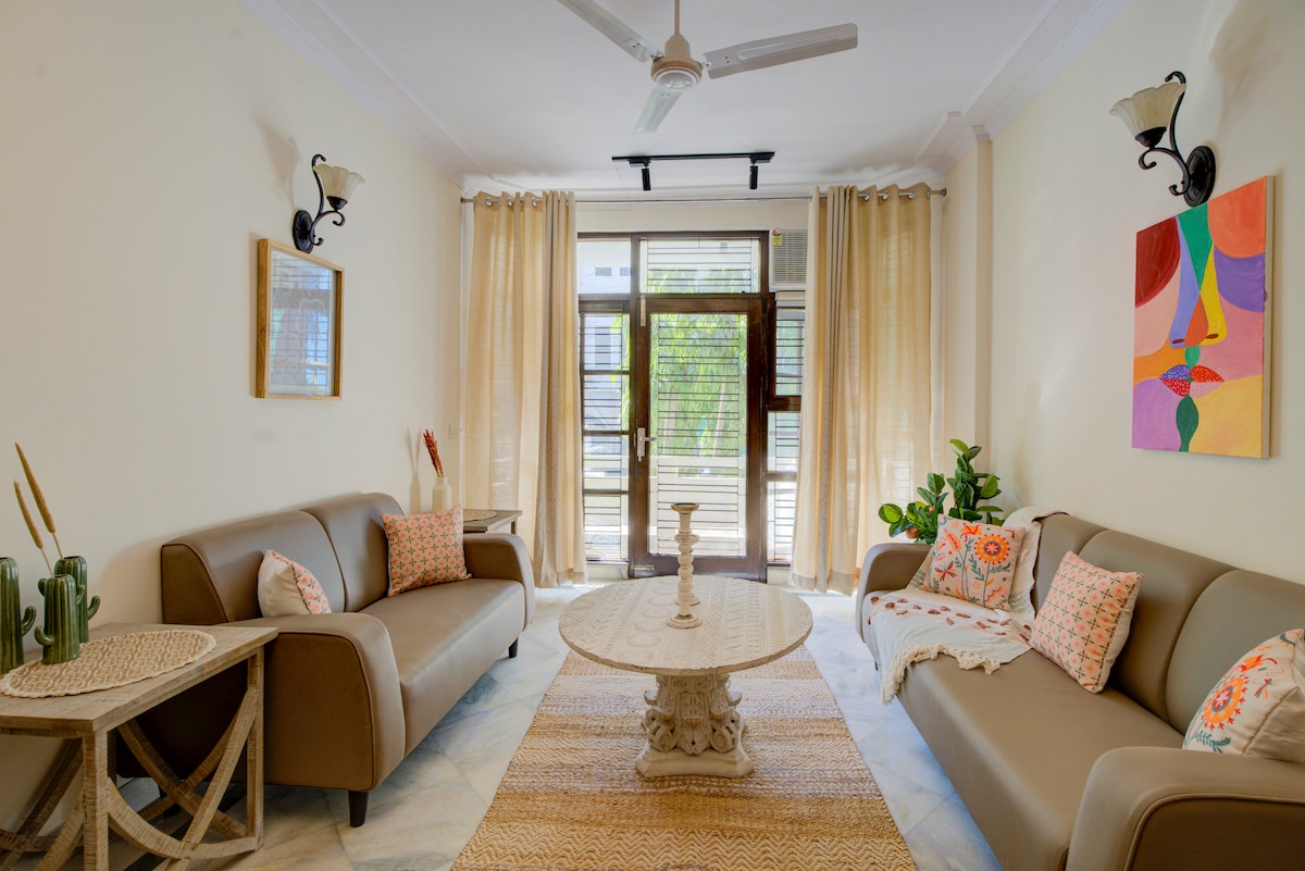 3 chambres aérées et élégantes | Confort ensoleillé près de la Porte de l'Inde
