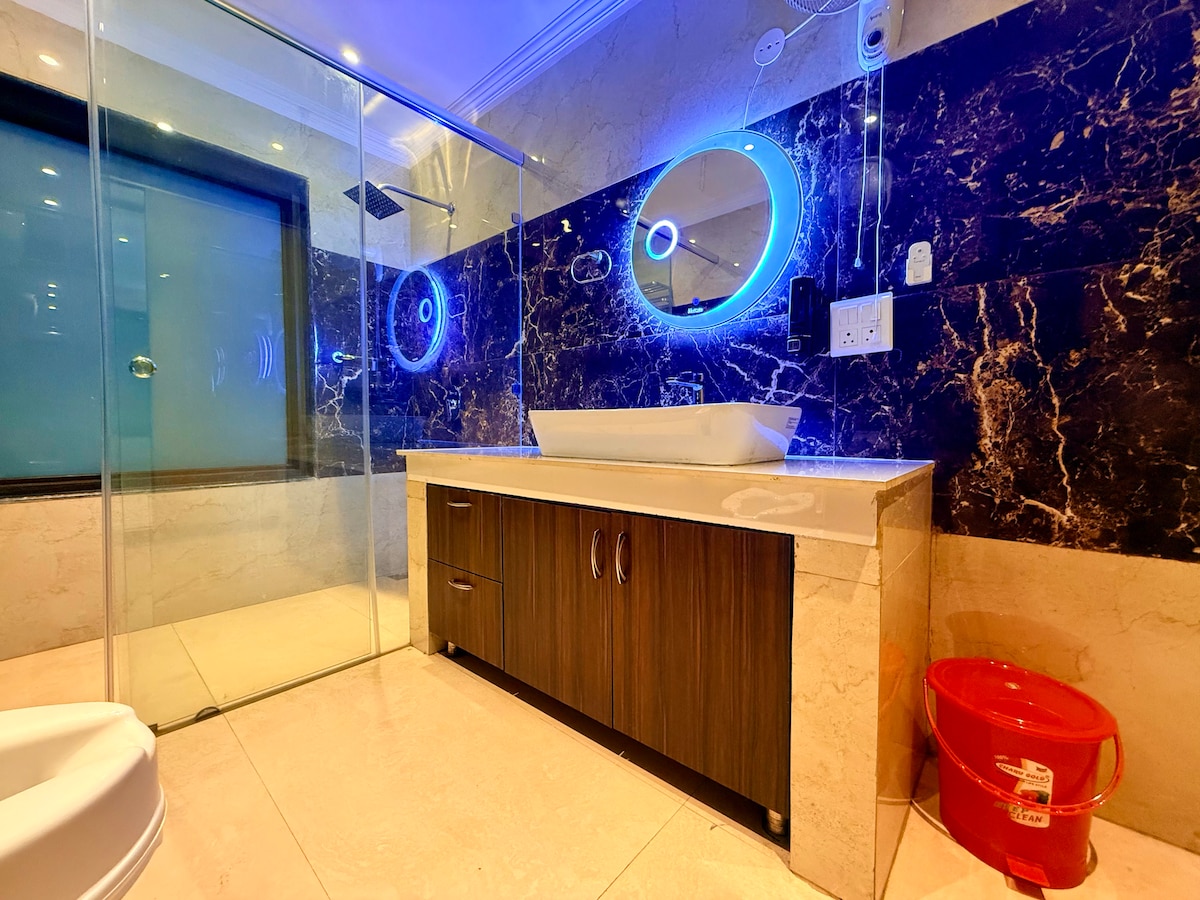 Insta - airbnb_gogo.homes Gogo Homes Kimika est la retraite idéale pour se ressourcer et se détendre. Profitez d'un séjour avec un jacuzzi apaisant à jets, idéal pour se détendre. Après votre trempette, profitez de la vue imprenable sur les gratte-ciel de Gurgaon depuis notre jardin en terrasse, avec de délicieuses bouchées des restaurants primés à proximité. Situé dans le secteur 27 haut de gamme de Gurugram ! Le prix mentionné est pour 2 personnes. Bien que l'espace soit assez grand pour inviter des gens à des rassemblements ! Les voyageurs supplémentaires seront facturés.