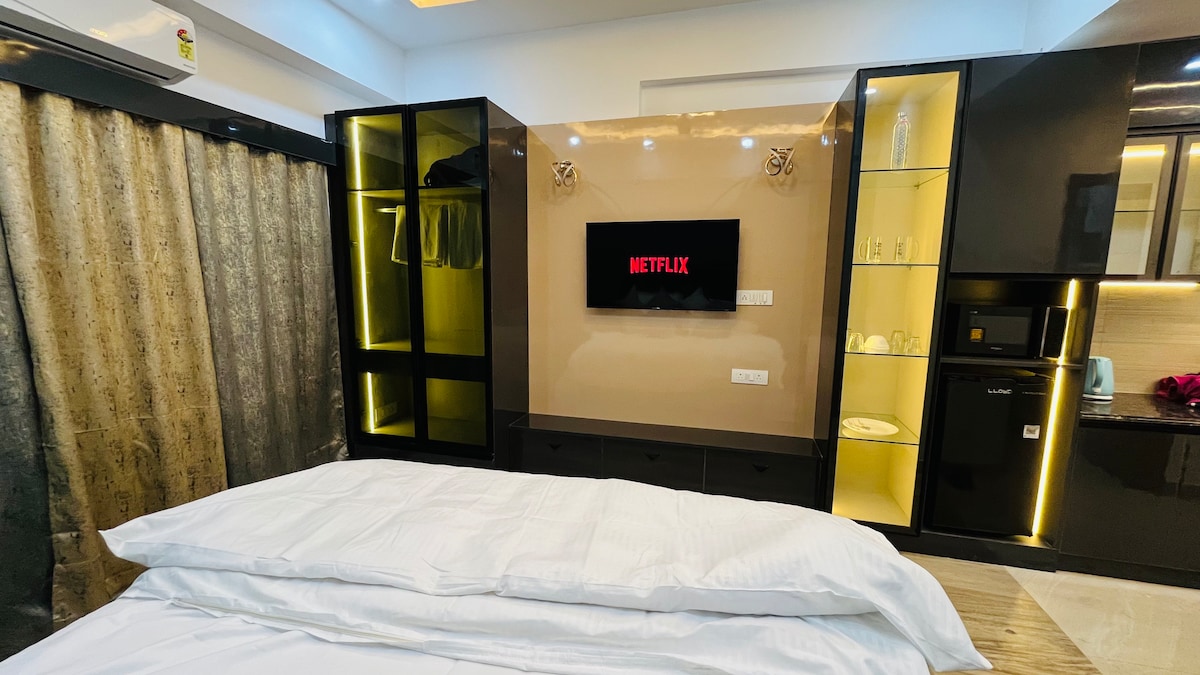 Profitez d'un séjour haut de gamme dans ce studio moderne et élégant de The X Stay, parfait pour les couples à la recherche de confort et d'intimité. Conçu avec un décor élégant et un éclairage chaleureux, l'espace dispose d'un lit confortable, d'une connexion WiFi haut débit, d'une télévision connectée et d'une kitchenette bien équipée. Situé dans un quartier paisible mais bien desservi du Grand Noida, il est idéal pour des escapades romantiques, des voyages d'affaires ou de courts séjours de détente ✨✨