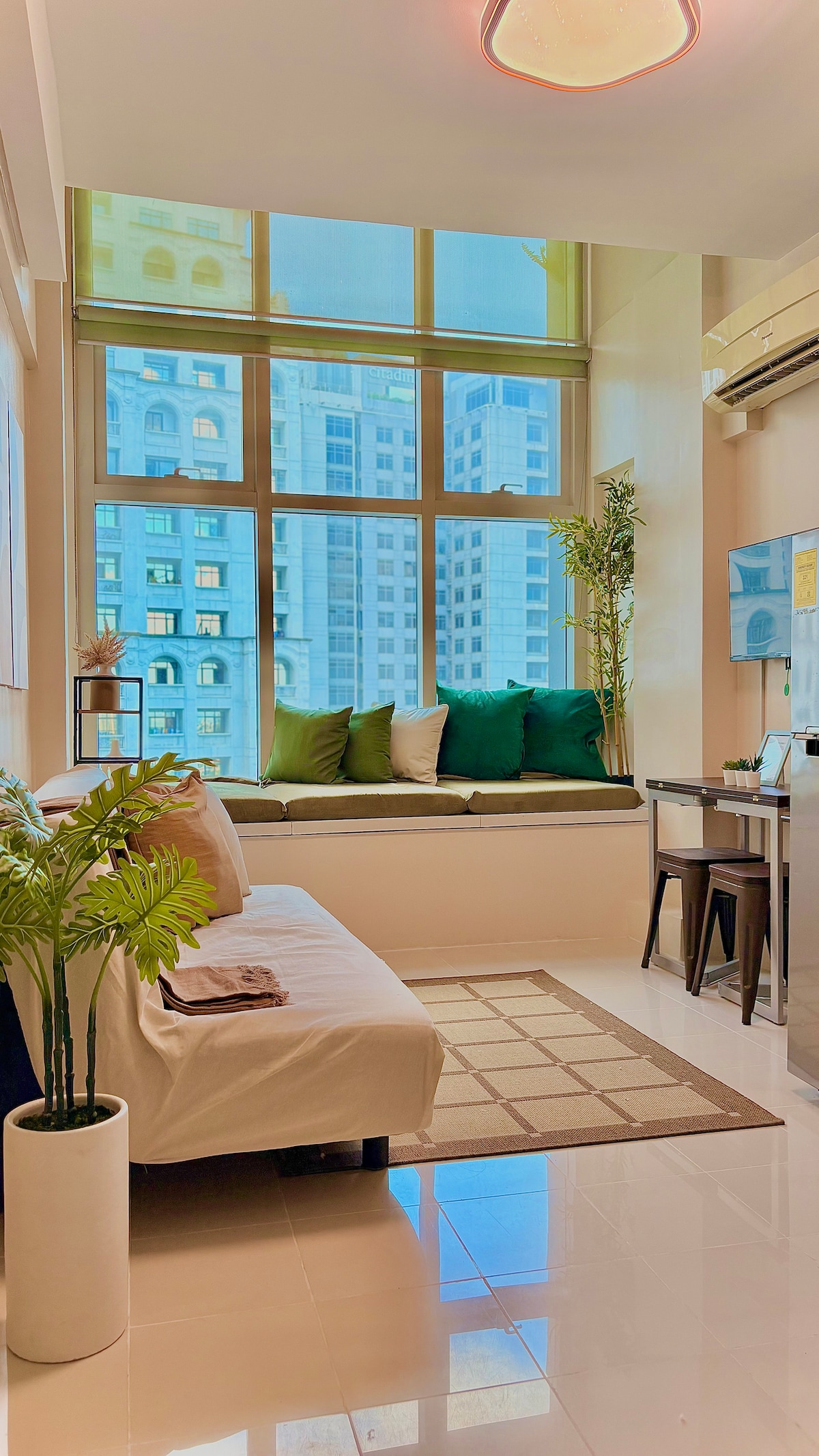 Suite d'angle rare de 60 m² avec baignoire autoportante et deux balcons privés donnant sur la ligne d'horizon. Conçu pour les soirées tranquilles, la lumière naturelle et les séjours confortables plus longs au cœur de Greenhills. Niché le long de la rue Wilson à San Juan, vous êtes à quelques minutes du centre commercial Greenhills, d'Ortigas et de Mandaluyong, tout en profitant de l'intimité d'une adresse résidentielle calme.