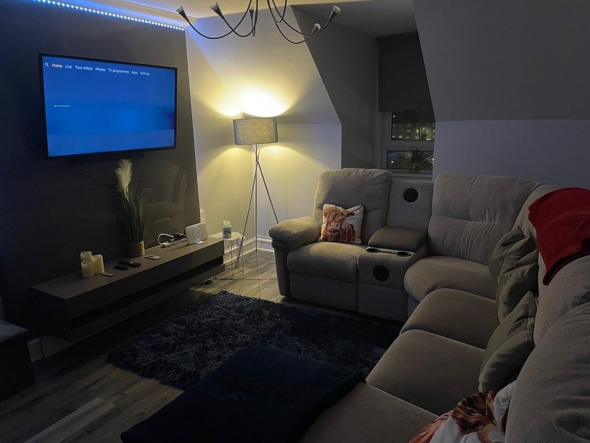 Bienvenue dans notre appartement lumineux, spacieux et récemment rénové au dernier étage situé au cœur de Gourock avec une vue imprenable sur la côte de Clyde. Situé à quelques minutes à pied d'une myriade de liaisons de transport, de bars, de cafés, de restaurants et de boutiques. Pour votre confort, nous fournissons des matelas de qualité, une connexion haut débit par fibre optique, une machine à café Tassimo, des articles de toilette Arran Aromatic, une télévision LG HD avec Sky, Netflix, Disney+, etc., un mobilier moderne et une buanderie.