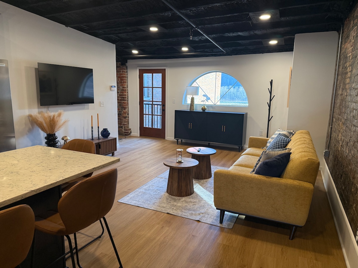 Modern 3rd-floor loft in Portsmouth’s Historic Boneyfiddle District! Enjoy exposed brick, high ceilings, and a full kitchen with large island—perfect for cooking or gathering. Relax in the open living space with river views and plenty of natural light. Walk to riverside parks, local eateries, shops, and cafés along 2nd Street. Stylish, comfortable, and close to Shawnee State University.