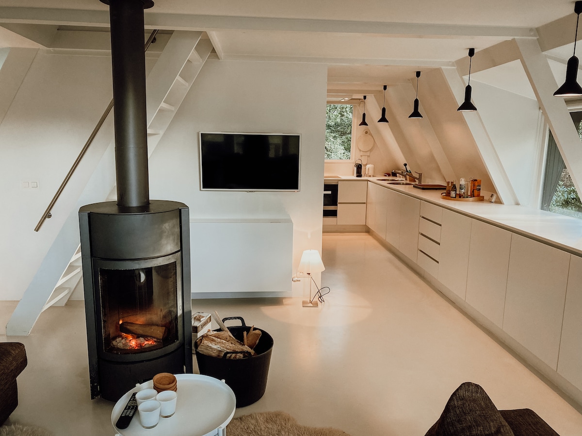 This cottage is surrounded by woods. It's the ideal place to unwind and enjoy nature. It's fully equipped with every luxury, and you can enjoy a cup of coffee or tea outside on the beautiful terrace with a hot tub. In the bathroom, you'll find a wonderful bath to unwind. The cottage is nestled in a wooded area, and we have similar properties adjacent to it, but each has its own private woodland. The minimum age for our guests is 25.