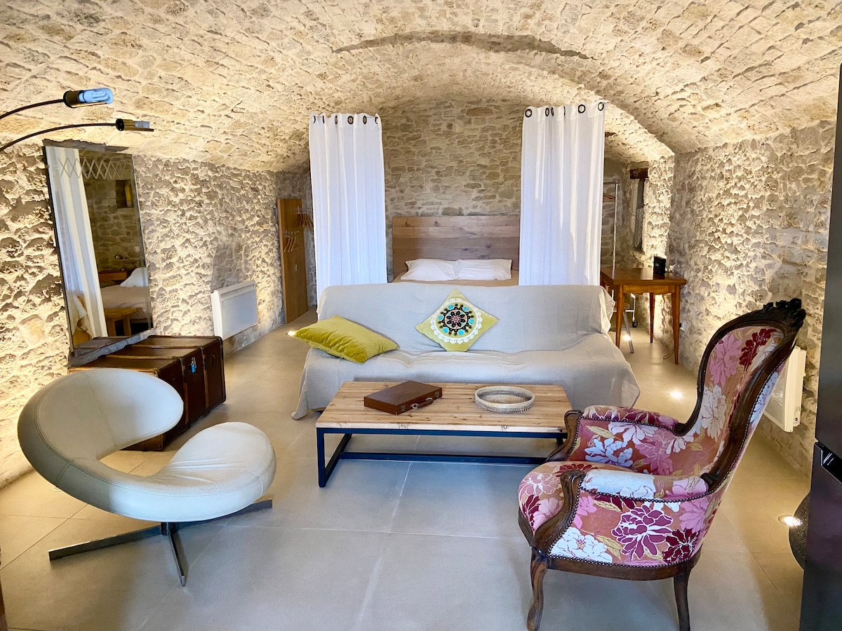Accrochée au rempart du Château, la Maison HOMAN* est un lieu unique. Habitation d’environ 50 m2 créée par un compagnon du devoir, composée d’une magnifique pièce voûtée 18ème siècle, située sous l’enceinte du château, ouverte sur un très bel espace cuisine dînatoire avec plafond cathédrale. Accès de plain pied sur un très romantique jardin/terrasse suspendu qui invite à une pause entre lavande, romarin et olivier. *HOMAN : étoile de la constellation de Pégase - " l'homme à l'esprit élevé "