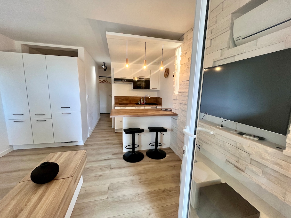 Bienvenue dans notre studio de 30m² entièrement refait à neuf en 2024, situé sur la Presqu’île de Giens, en rez de jardin avec terrasse de 16m ² Vous serez dans une résidence sécurisée, clôturée avec place de parking privative. Vous aurez un accès à la plage à 200m à pieds par un chemin privé À 300 mètres à droite en sortant de la résidence se trouve le « Marché bergerie » avec boulangerie, primeur fruits et légumes, poissonnerie, produits régionaux et terrasse vue sur les vieux Salins d’Hyères🦩