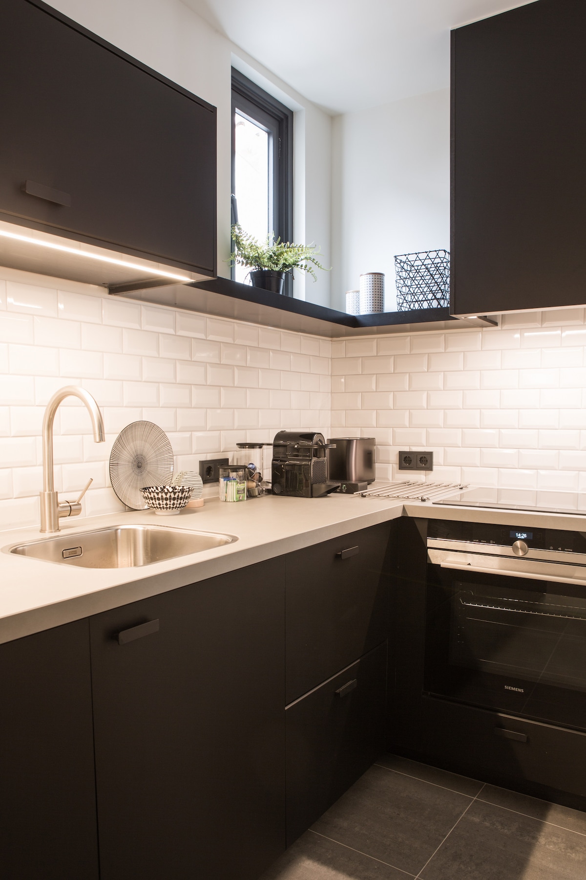 - Studio de 23 m ² /248 pieds carrés - Idéal pour 2 personnes maximum - Lit double (160x200cm / 63x79in) - Salle d'eau moderne avec douche - Kitchenette entièrement équipée avec thé et café, produits de base pour faire du thé et du café, ainsi qu'une table à manger Notez que la pièce réelle peut différer des photos. Les plafonds des chambres sont volontairement laissés bruts dans le cadre de la décoration intérieure.