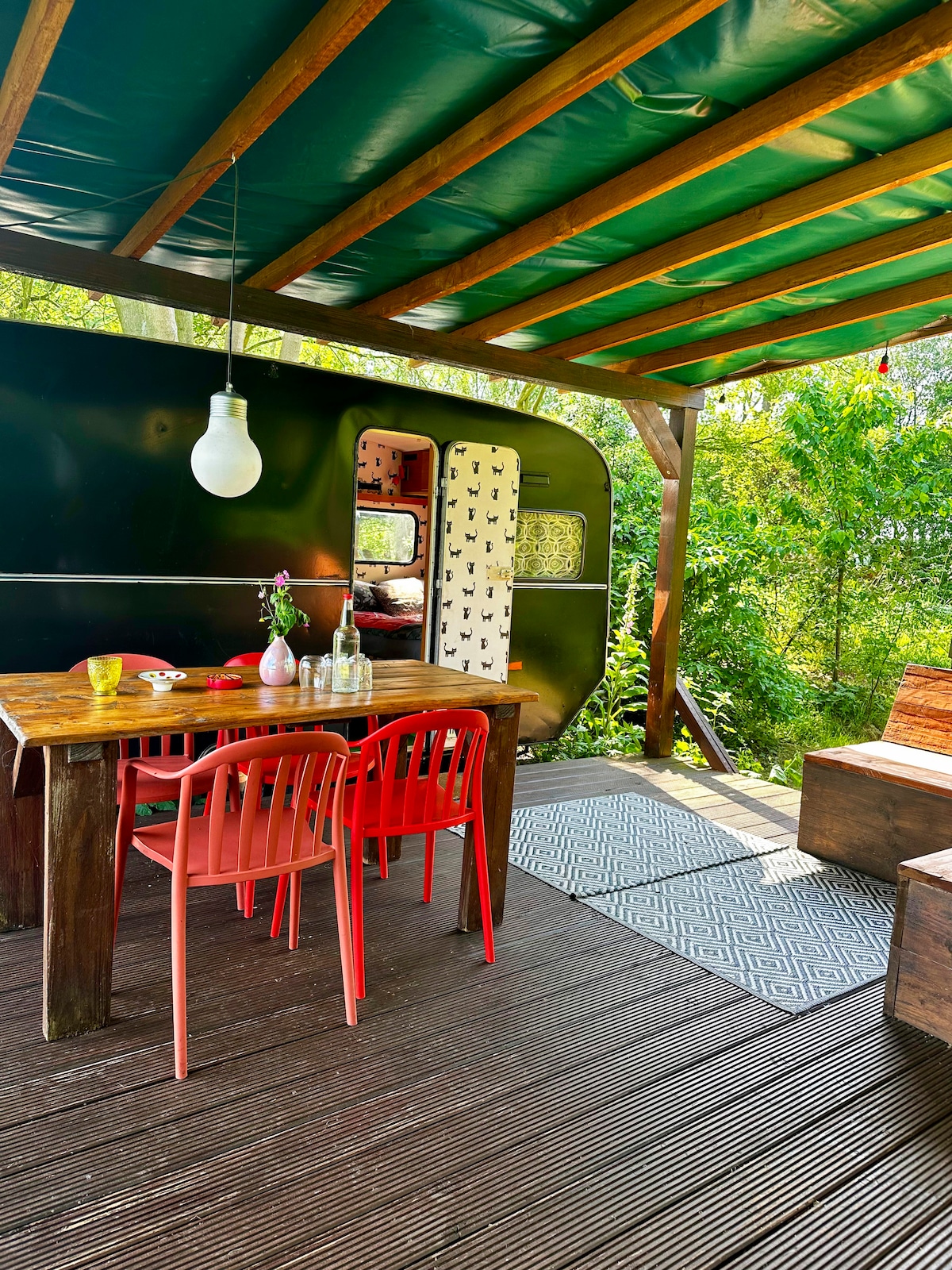 Caravane rétro avec terrasse couverte généreuse